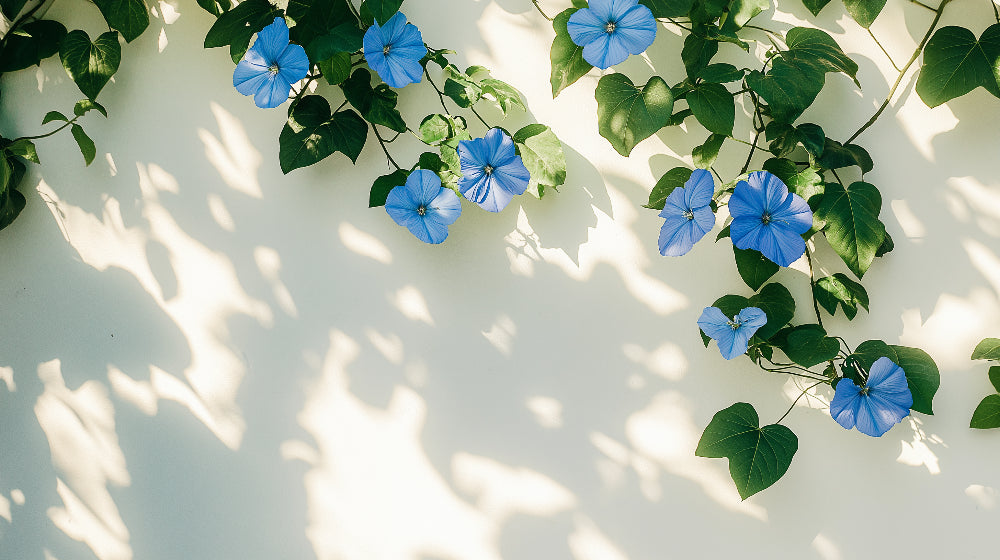 Florale Tapete | Blaue Prunkwinde mit Schatten