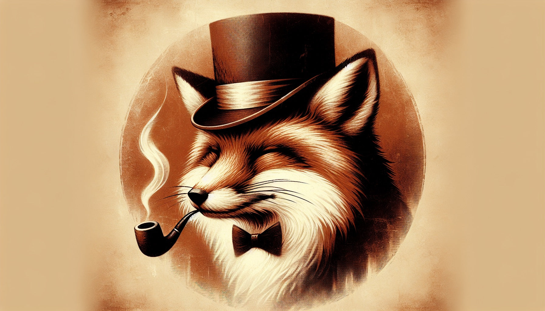 Diese vintage Fuchs Tapete zeigt ein meisterhaft gestaltetes Porträt eines eleganten Fuchses, geschmückt mit klassischen Accessoires eines Gentlemans. Das sepiafarbene, kreisförmige Design besticht durch exquisite Details in jedem Pinselstrich, vom sorgfältig dargestellten Fell des Fuchses bis zum edlen Zylinder und der polierten Fliege. Ein Rauchschwaden windet sich elegant aus dem Waldtier Tapeten-Design und verleiht diesem distinguierten Charakter einen Hauch von Verspieltheit.