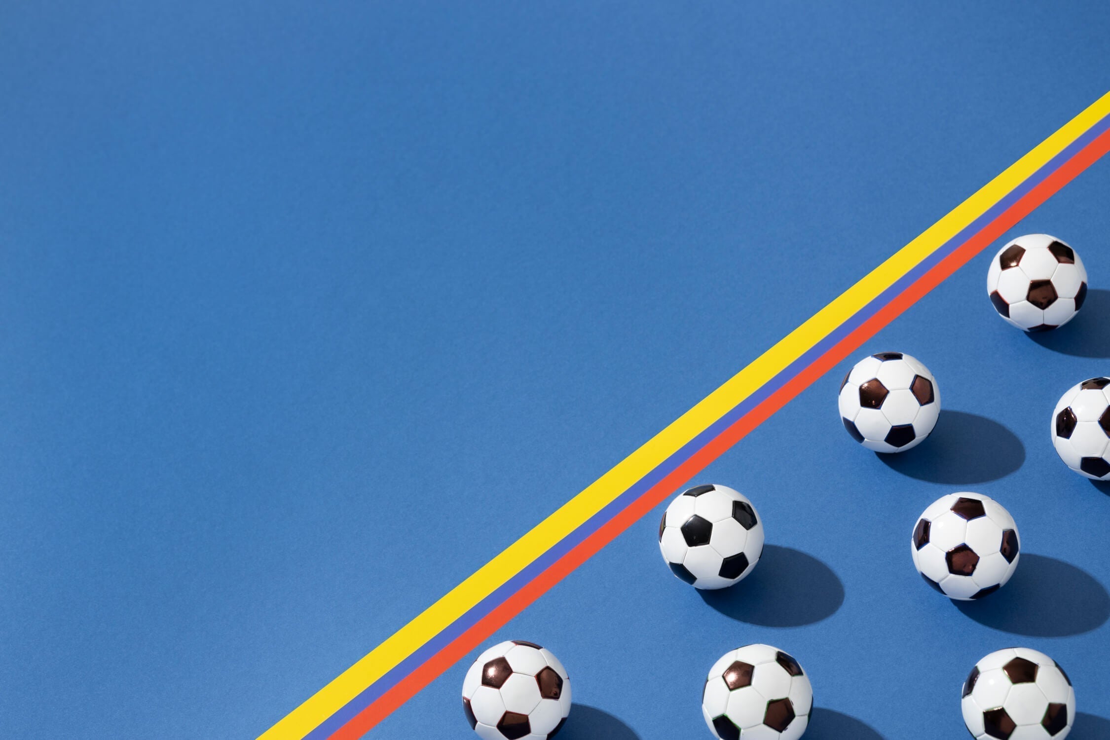 Fußball Tapete | Blaues sportliches Design mit Regenbogenlinien