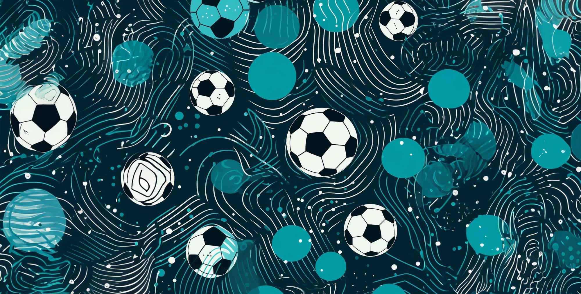 Dieses Fußball-Tapeten-Mural schafft mit seinem dynamischen Design von schwebenden Fußbällen vor einem tieftürkisfarbenen Hintergrund eine bezaubernde kosmische Atmosphäre. Klassische schwarz-weiße Fußbälle tanzen zwischen wirbelnden weißen Linien und türkisfarbenen Kugeln und erzeugen ein faszinierendes Muster, das sportliche Energie mit künstlerischem Flair verbindet. Die Sporttapete bietet eine innovative Mischung aus geometrischen Mustern und fließender Bewegung, mit zarten Punkten, die wie ferne Sterne verstreut sind.