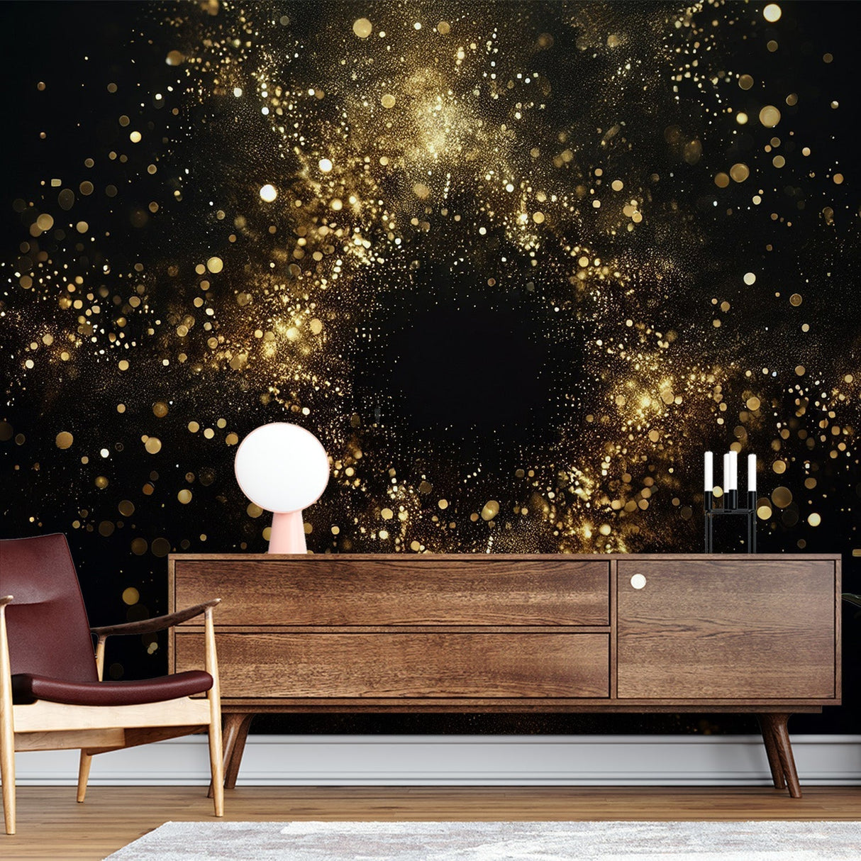Das gold-schwarze Muster erzeugt ein Gefühl von unendlichem Raum und lässt Ihre kosmische Tapete wirklich hervorstechen.