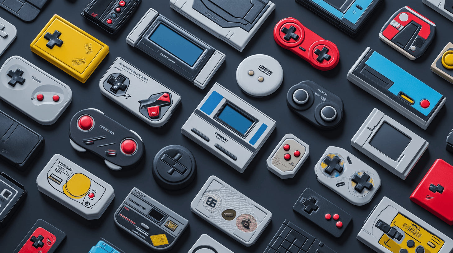 Jeder ikonische Controller und jedes Spielsystem erzählt eine Geschichte in dieser vintage Gaming-Tapete.