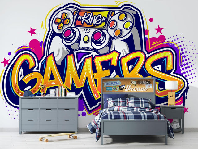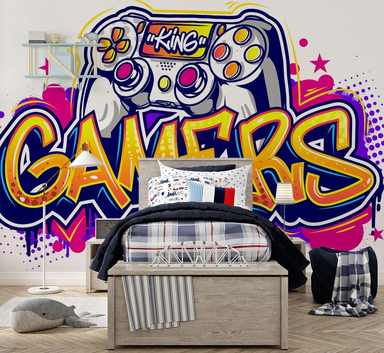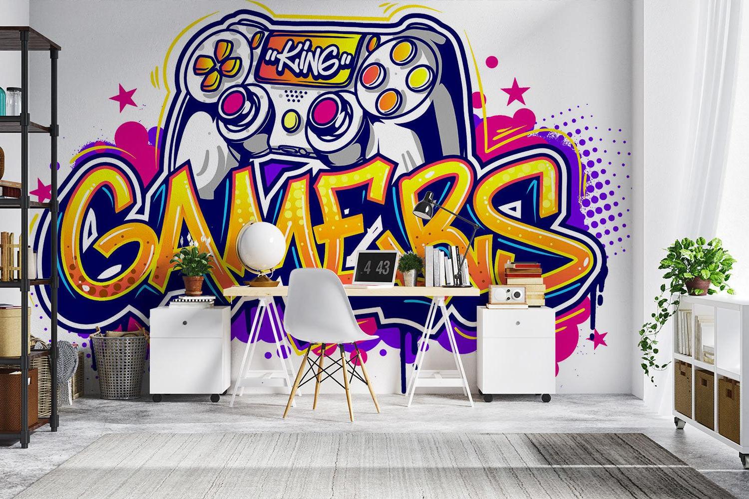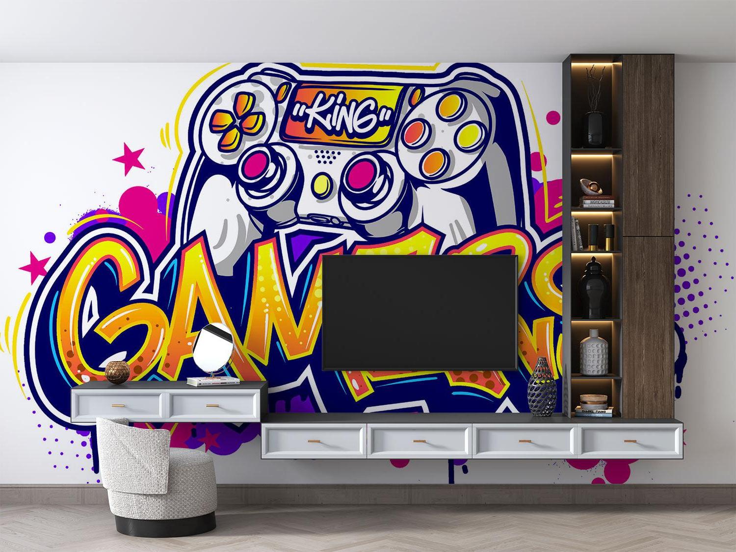 Verwandeln Sie jeden Raum in ein immersives Gaming-Heiligtum mit diesem Graffiti-Gaming-Mural. Perfekt, um eine dedizierte Entertainment-Zone zu schaffen, bringt dieses Street-Art-Wandmural Energie und zeitgenössischen Stil in Teenager-Schlafzimmer, Gaming-Setups oder Freizeitbereiche. Die dynamische Komposition und der urbane Stil des Designs machen es zur idealen Wahl für alle, die eine moderne, jugendorientierte Atmosphäre schaffen möchten, die die Gaming-Kultur feiert.