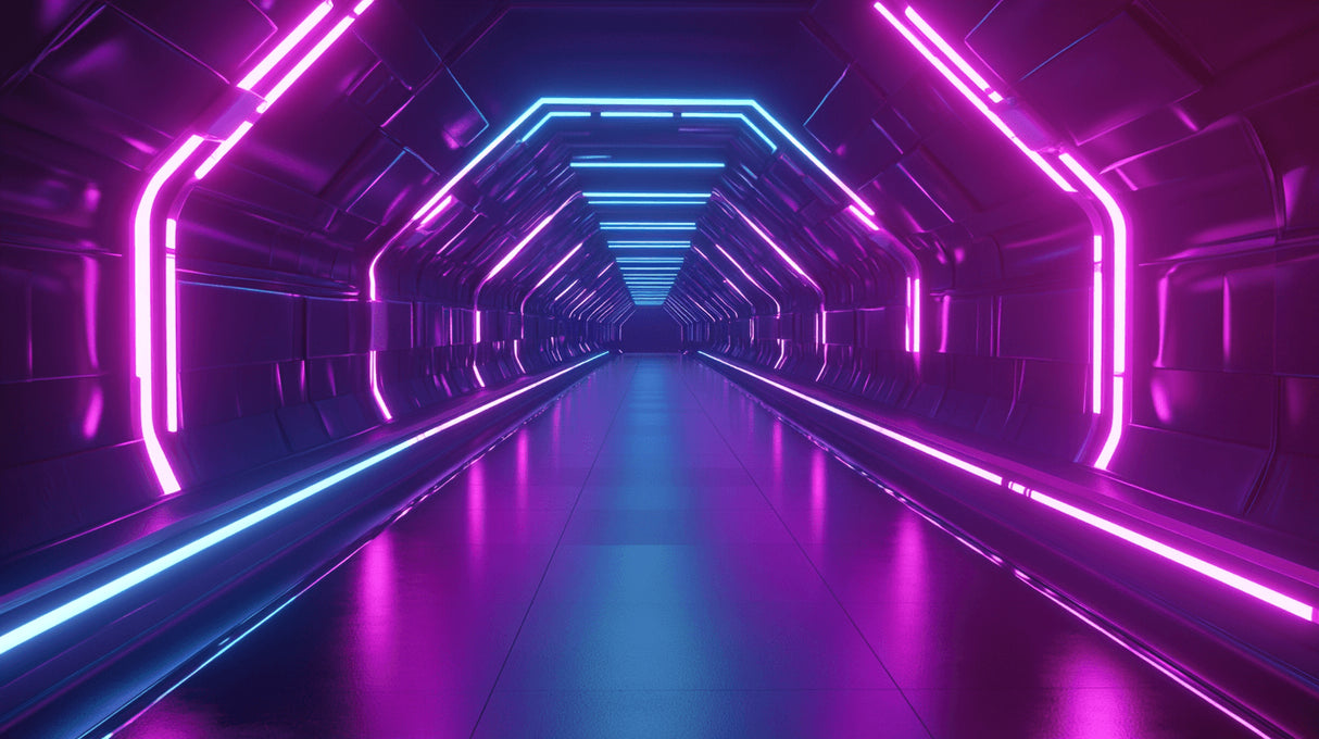 Gaming Tapete | Neon-Tunnel mit lila und blauen Lichtern