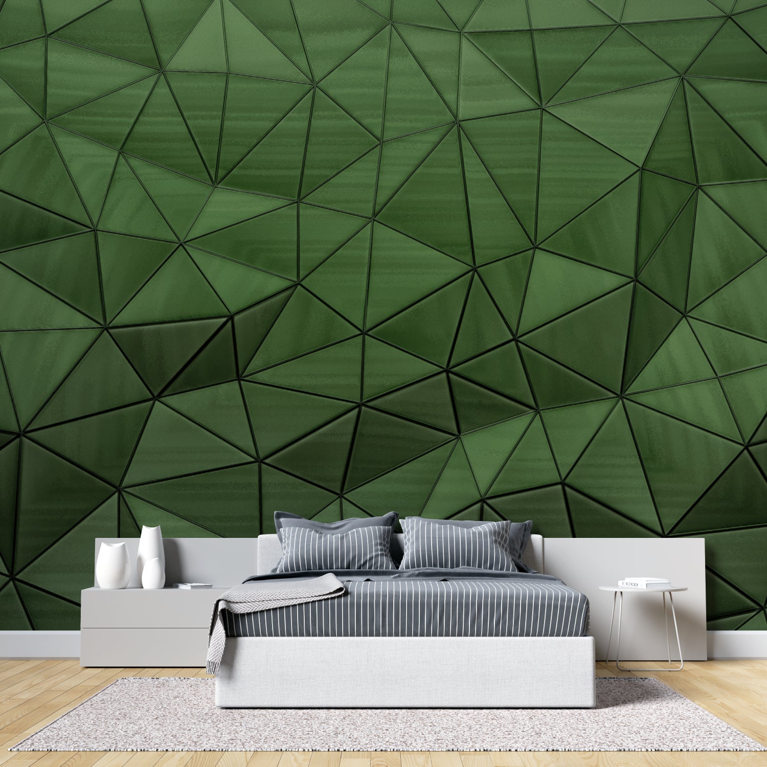 Verwandeln Sie Ihren Raum mit dieser 3D geometrischen Tapete, die zeitgenössische architektonische Eleganz in jedes Interieur bringt. Das moderne Dreieck-Tapetendesign dient als kraftvoller Blickfang und ist ideal, um eine beeindruckende Akzentwand in modernen Räumen zu schaffen. Seine vielseitige grüne Farbpalette ergänzt sowohl minimalistische als auch moderne Gestaltungskonzepte und macht es für verschiedene Einrichtungsstile geeignet.