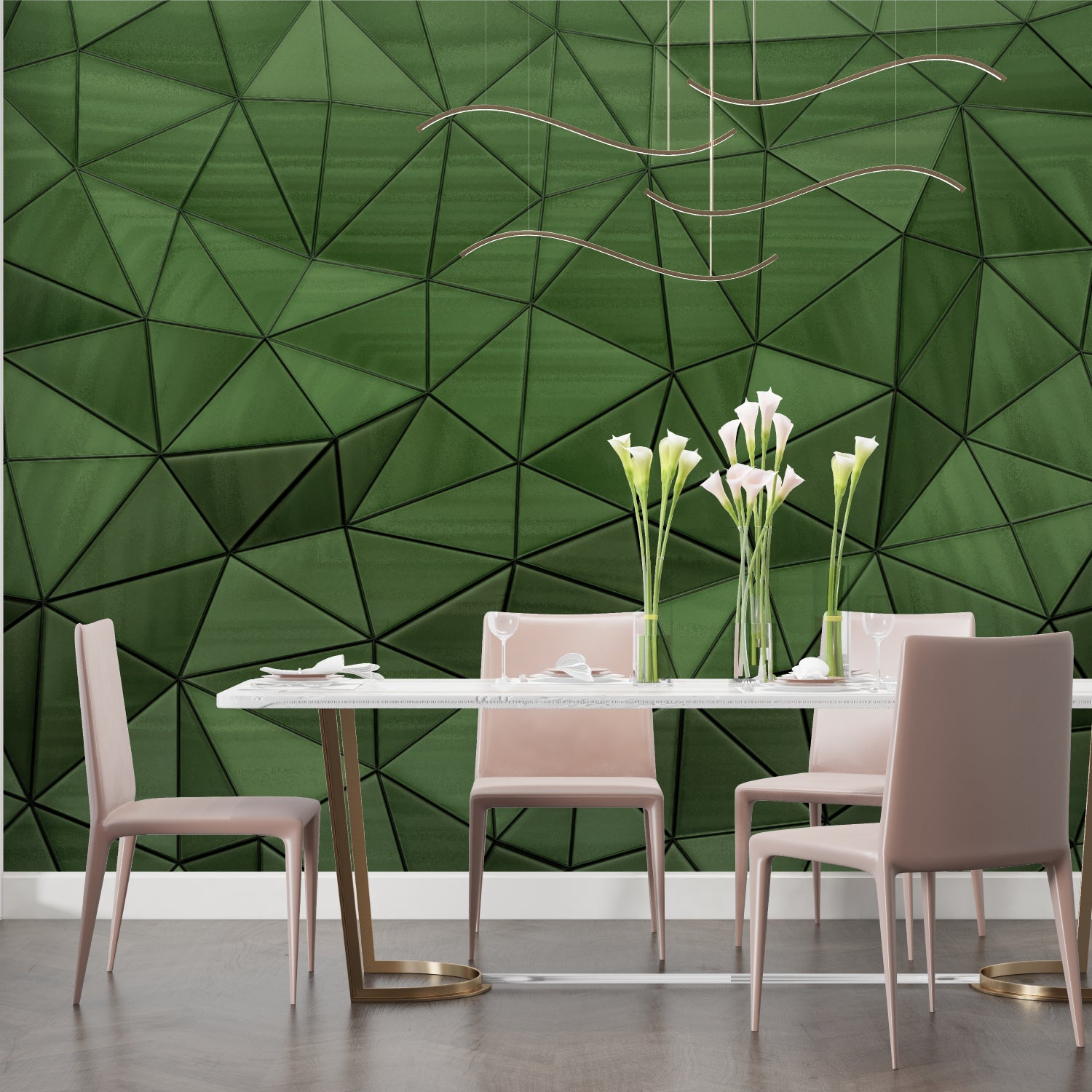 Geometrische Tapete | Modernes 3D Grünes Dreieck Design