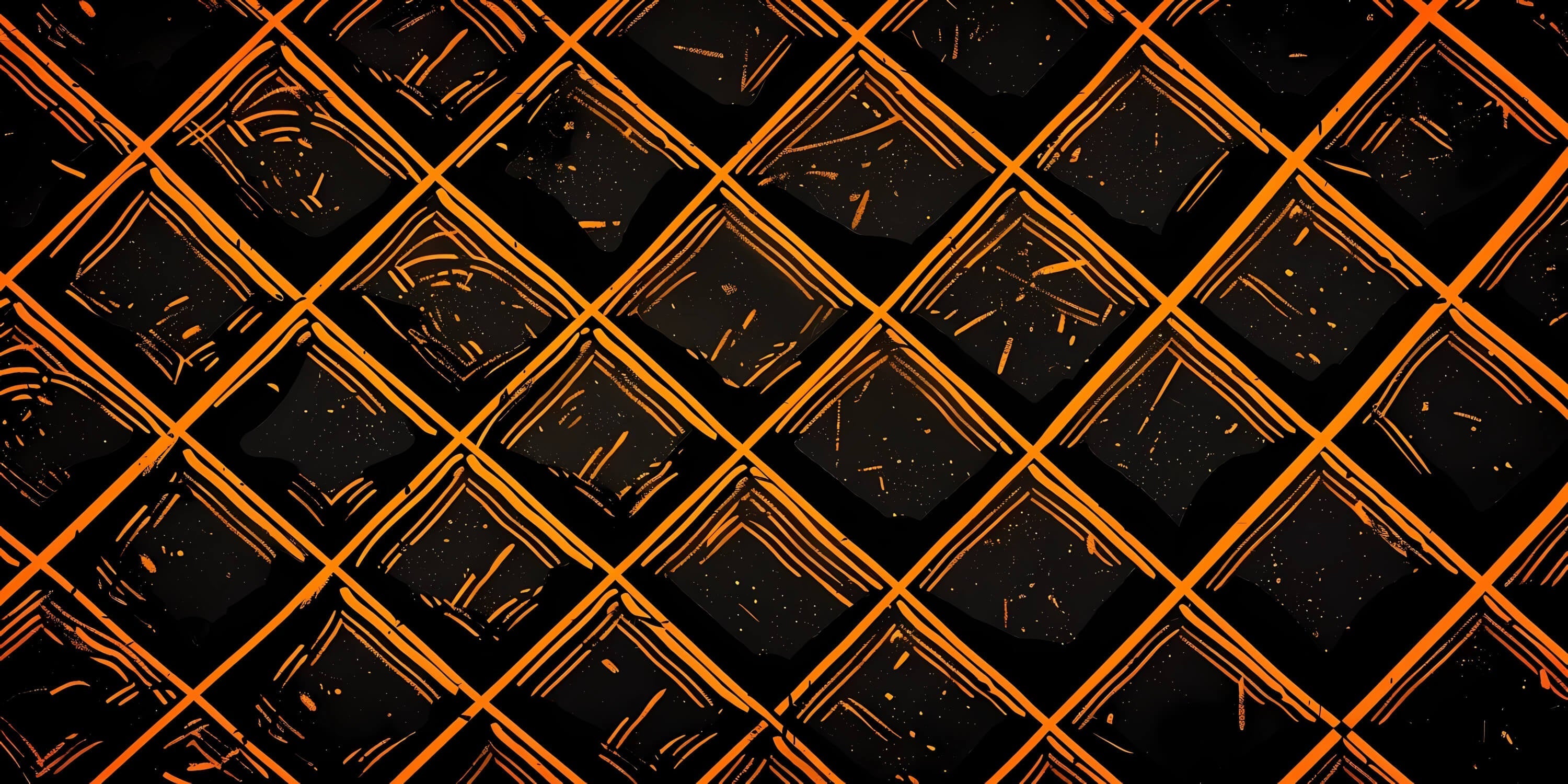 Diese geometrische Muster-Tapete zeigt ein mutiges und zeitgenössisches Design mit dynamischen orangen Linien, die auffällige Diamantformen vor einem tiefschwarzen Hintergrund erzeugen. Das Pinselstrich-Muster verleiht der Komposition eine künstlerische Note, während subtile Abnutzungseffekte Tiefe und Charakter zu dieser modernen geometrischen Tapete hinzufügen. Die präzise Kreuzung der Linien schafft einen raffinierten Gittereffekt, der Aufmerksamkeit erregt, ohne den Raum zu überwältigen.