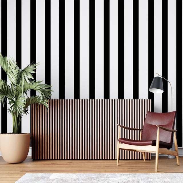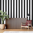 Unsere schwarz-weiß gestreifte Tapete hebt Ihren Blick und erweitert Ihren Raum.