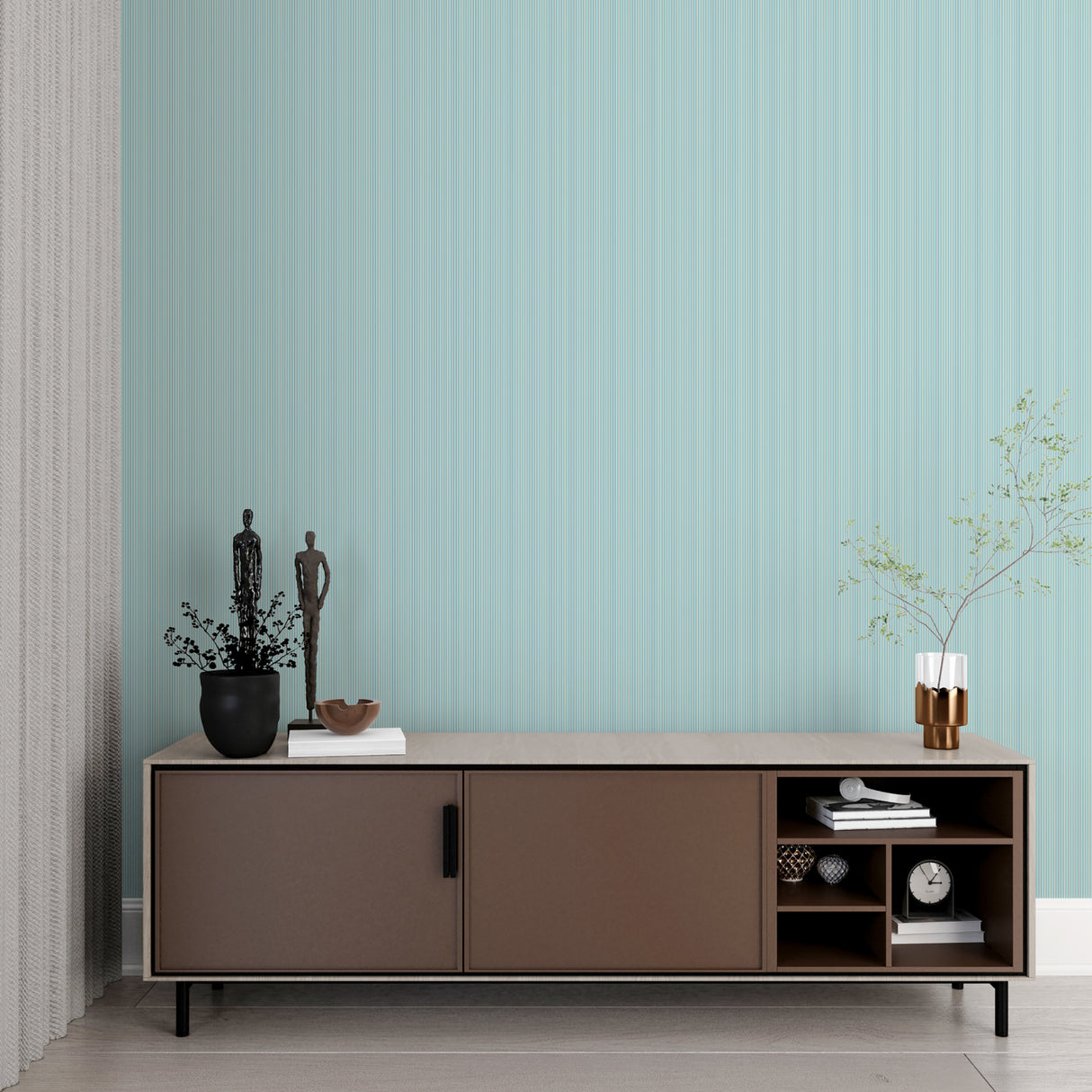 Unsere vertikale Streifen-Tapete bringt schlichte Schönheit an Ihre Wände.