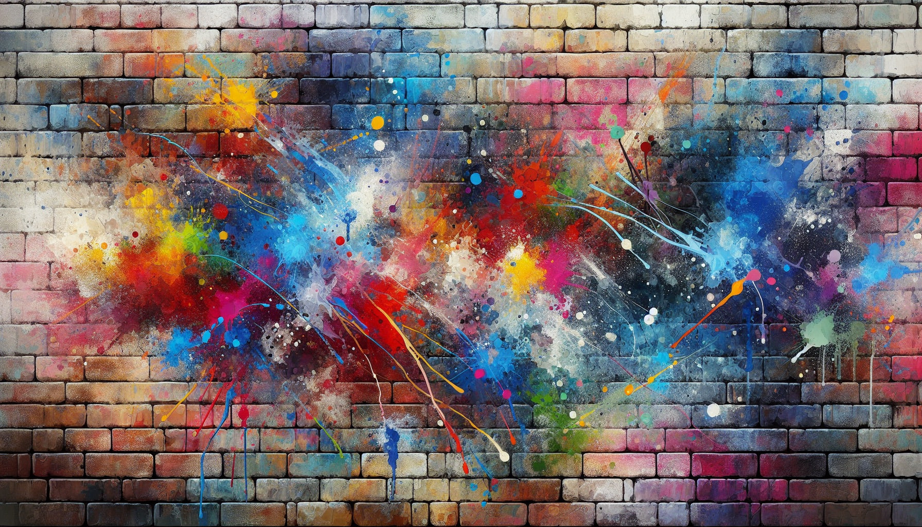 Diese urbanen Graffiti-Tapete zeigt eine außergewöhnliche Explosion lebendiger Farben vor einem strukturierten Backstein-Hintergrund. Dynamische Spritzer von elektrischem Blau, leidenschaftlichem Rot, sonnigem Gelb und tiefem Violett schaffen eine energetische Farbsymphonie, die über die Wand tanzt. Jeder Farbspritzer und Tropfen wurde meisterhaft gestaltet, um die spontane Essenz der Straßenkunst-Tapete einzufangen und eine faszinierende Darstellung urbaner künstlerischer Ausdrucksweise zu schaffen.