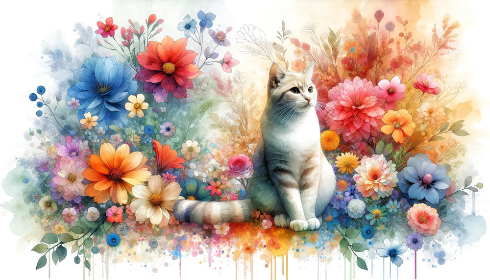 Verwandeln Sie Ihren Raum mit diesem künstlerischen Katzen-Wandbild, das die Brücke zwischen Natur und Fantasie schlägt. Die Aquarell-Blumentapete schafft eine Atmosphäre von ruhiger Schönheit und sanfter Eleganz, was sie zur idealen Wahl für alle macht, die ihrem Interieur sowohl Charakter als auch Ruhe verleihen möchten. Die nahtlose Verbindung botanischer Elemente mit dem Katzenmotiv bietet einen einzigartigen Blickfang, der das Auge anzieht und gleichzeitig ein Gefühl von friedlicher Harmonie bewahrt.