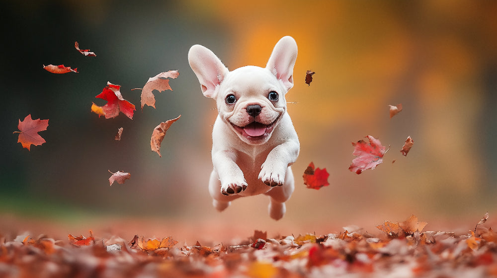 Tapete mit Haustier-Motiv | Verspielter Französischer Bulldogge in herbstlicher Szene
