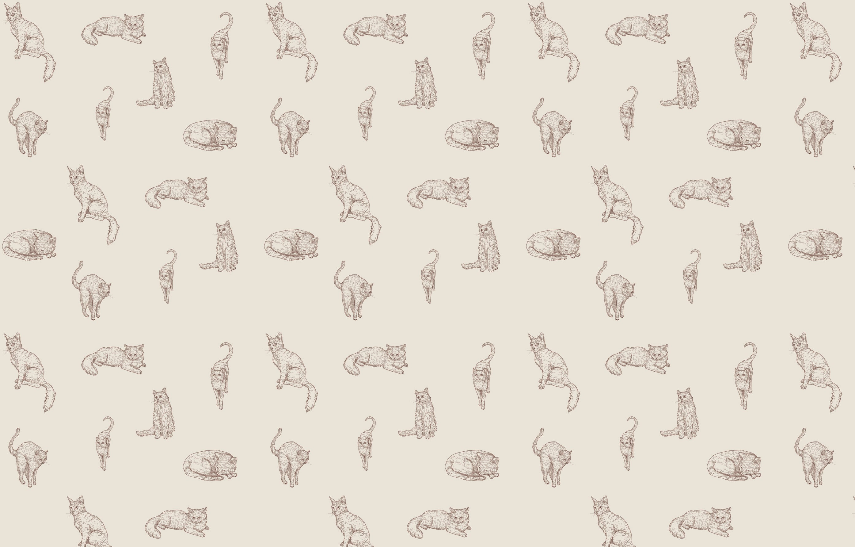 Diese Katzenmuster-Tapete zeigt eine elegante Reihe von handgezeichneten Katzen in verschiedenen natürlichen Posen, dargestellt in sanften braunen Linien vor einem ruhigen beigen Hintergrund. Jedes sorgfältig gezeichnete Detail der Katzenillustration-Tapete fängt die anmutigen Bewegungen und charakteristischen Posen der Katzen ein, von liegenden Positionen bis zu verspielten Haltungen, und schafft ein anspruchsvolles sich wiederholendes Muster, das künstlerische Raffinesse ausstrahlt.