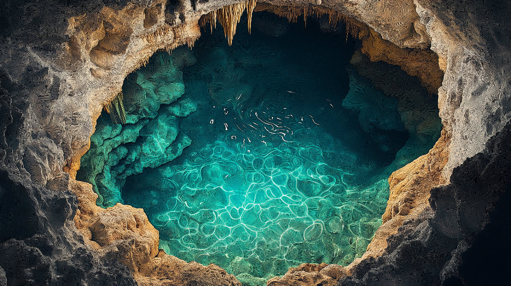 Höhlen-Tapete | Unterirdischer Smaragdsee-Blick