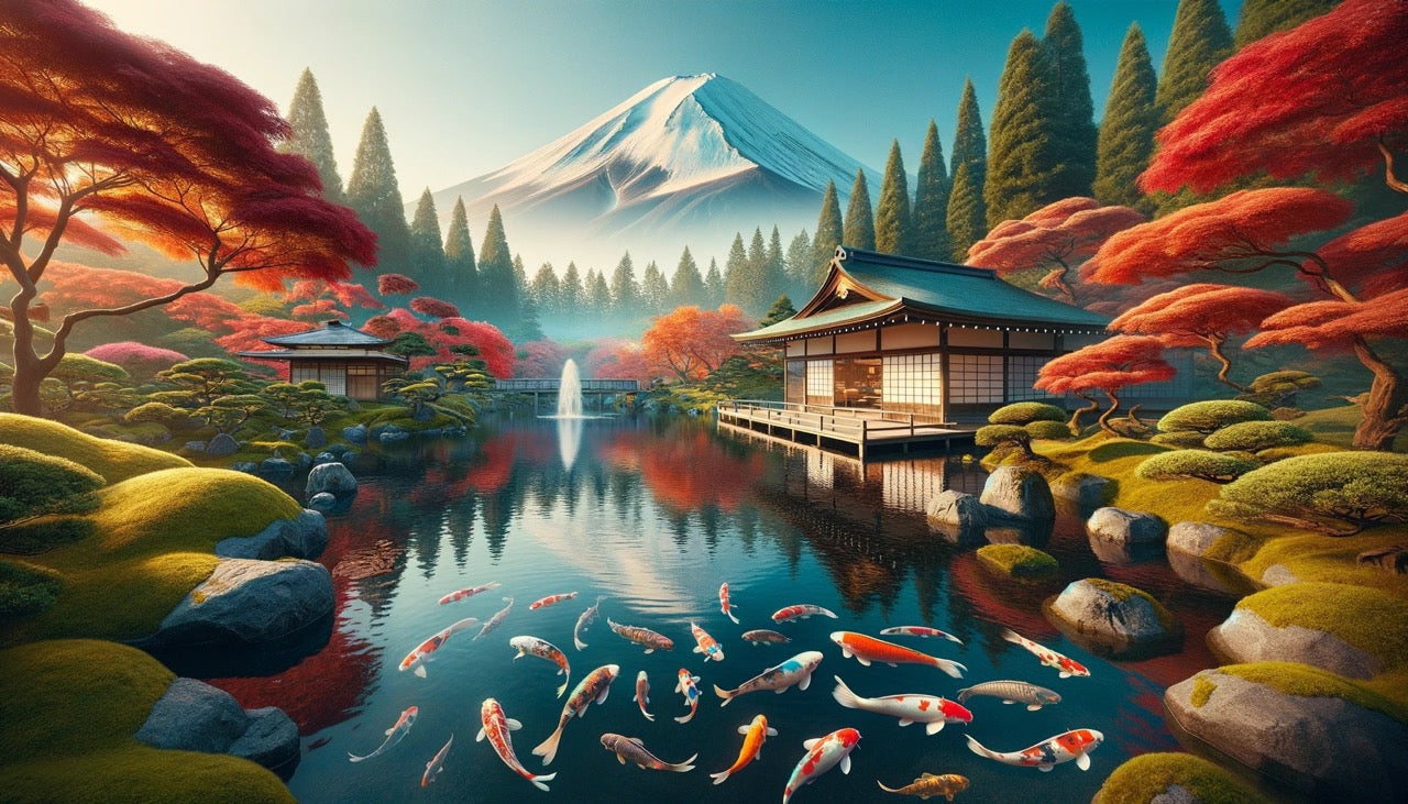 Die reiche Mischung aus Ahornbäumen und Koi-Fischen schafft eine lebendige, atmende Szene.