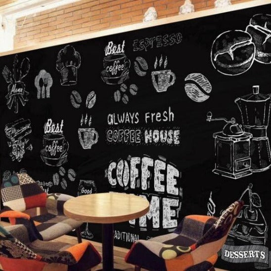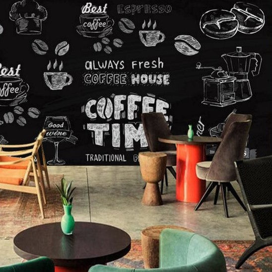 Coffee House Tapete | Schwarz-Weiß-Tafel-Design