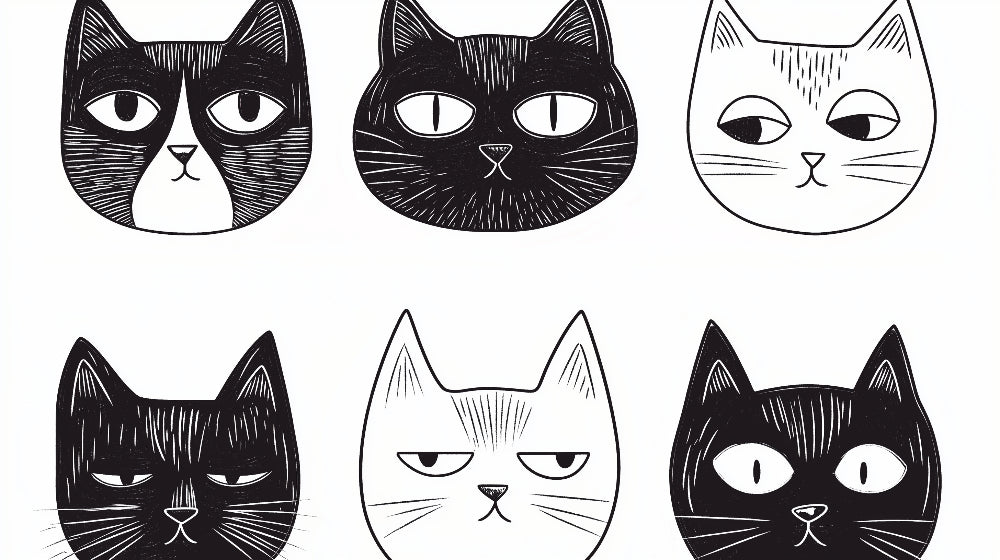 Diese auffällige schwarz-weiße Katzen-Tapete zeigt eine charmante Parade von Katzenköpfen, dargestellt in kräftiger, zeitgenössischer Linienkunst. Jede Katzenkopf-Wandmalerei zeigt durch ausdrucksstarke Augen und Schnurrhaare eine eigene Persönlichkeit und schafft ein ansprechendes Muster aus abwechselnden schwarz-weißen Designs. Die minimalistische Kunst verwendet klare Linien und künstlerische Schraffurtechniken, die jedem illustrierten Porträt Tiefe und Charakter verleihen und es zu einem anspruchsvollen, aber verspielten Statement-Stück machen.