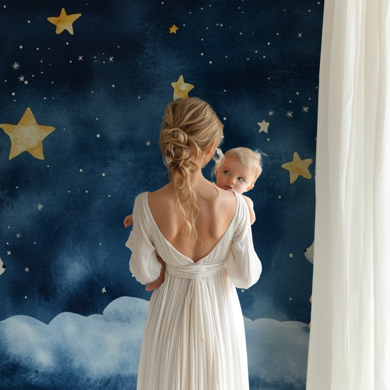 Verwandeln Sie jeden Raum in ein friedliches Refugium mit dieser Sternennacht-Tapete. Die beruhigende Farbpalette aus Mitternachtsblau, Wolkenweiß und warmem Gold schafft eine entspannende Umgebung, die mit Ihrem Kind mitwächst. Dieses Kaninchen-Tapeten-Design eignet sich hervorragend für Kinderzimmer, Schlafzimmer oder Spielzimmer und bietet sowohl dekorativen Reiz als auch eine sanfte, fürsorgliche Atmosphäre, die süße Träume und fantasievolles Spielen fördert.