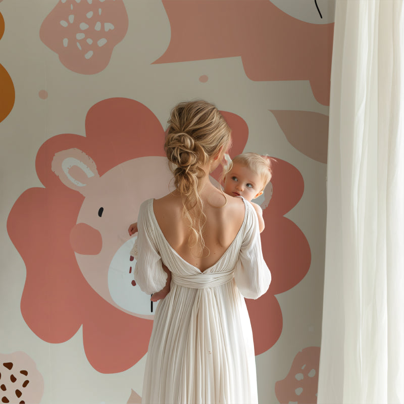Diese rosa Löwen-Tapete bringt Freude und Ruhe in Kinderzimmer.