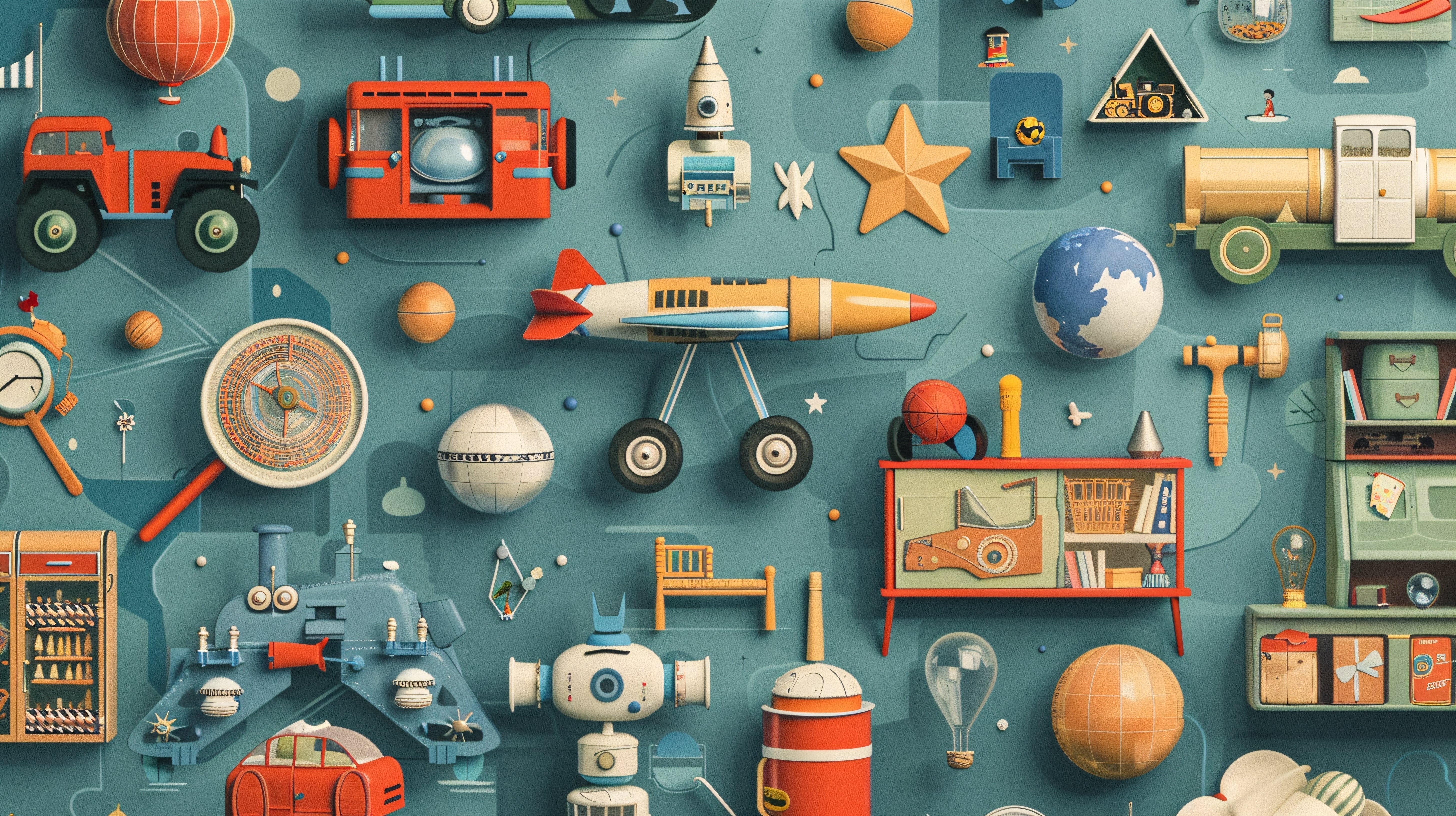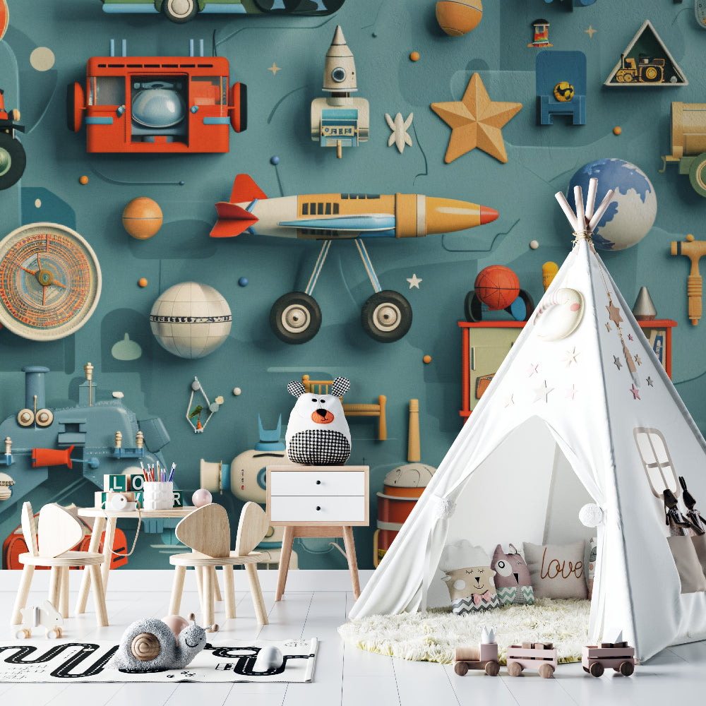 Kinder Tapete | Vintage 3D Spielzeug und Weltraumthema