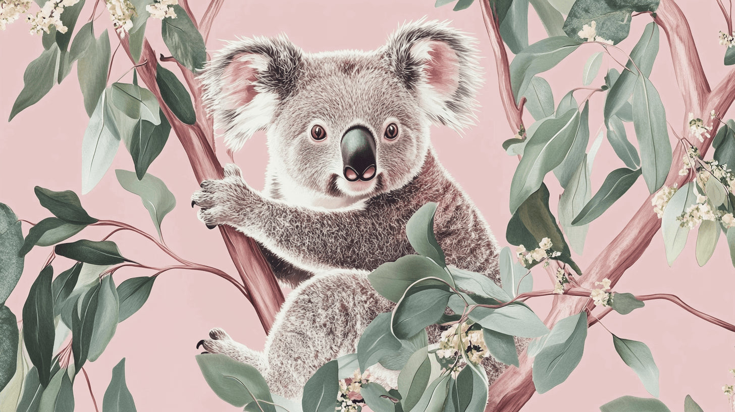Koala Tapete | Rosa Naturthema mit Eukalyptus