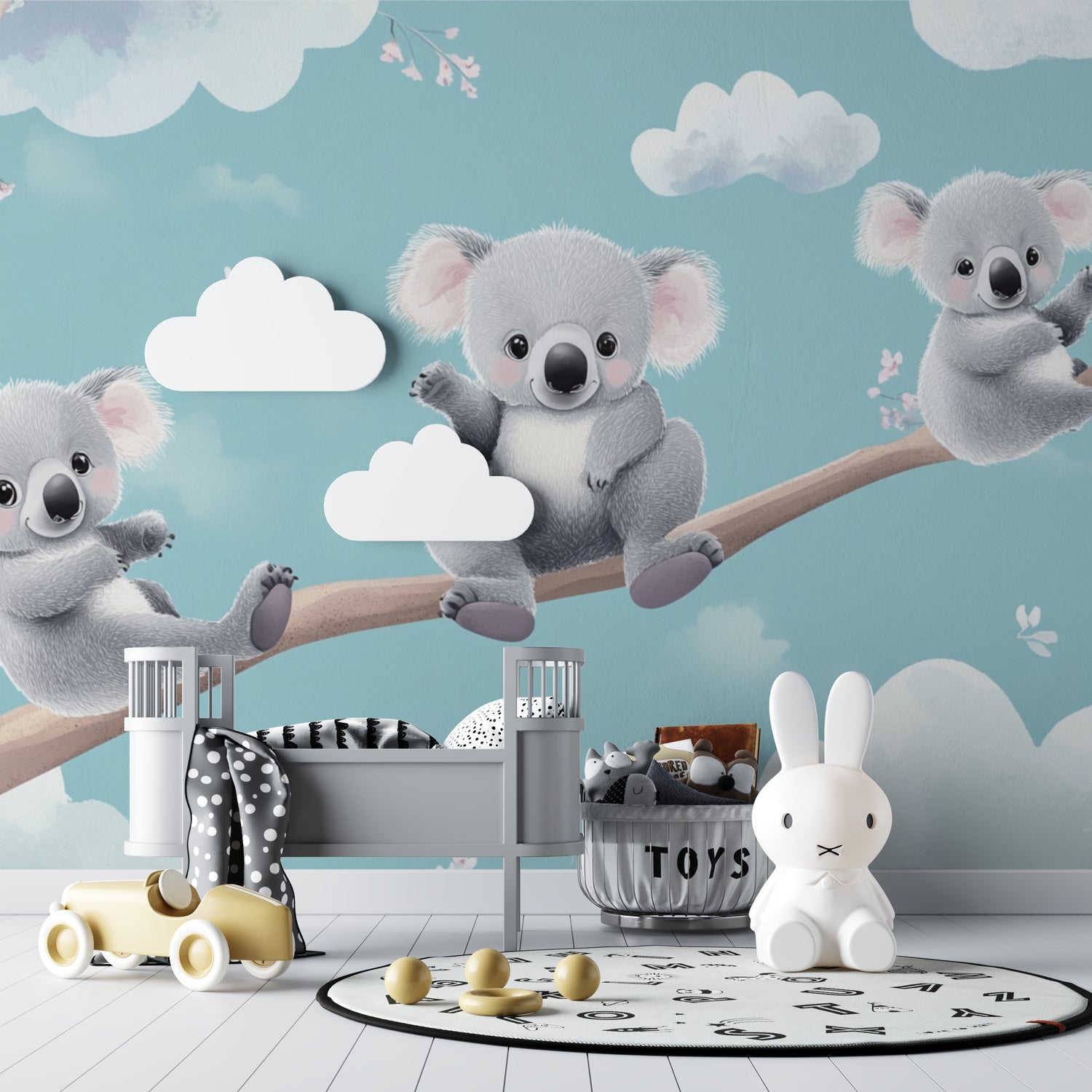 Diese Koala-Kinderzimmer-Tapete erweckt Träume im Raum Ihres Kleinen zum Leben.