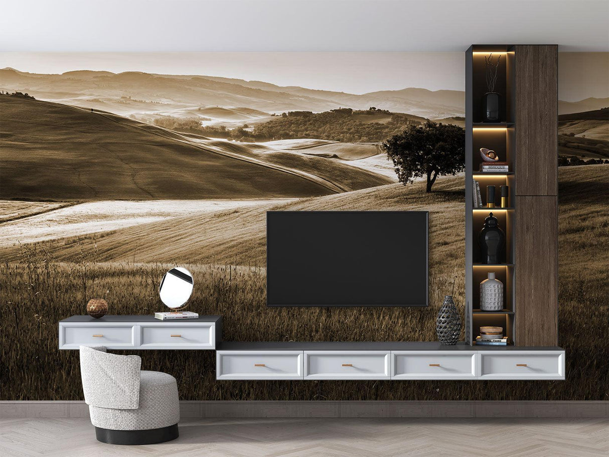 Sepia Toskanische Hügel Natur-Wandbild