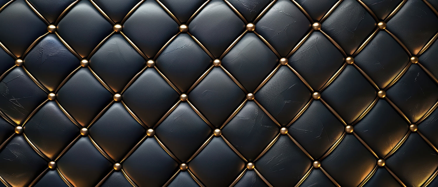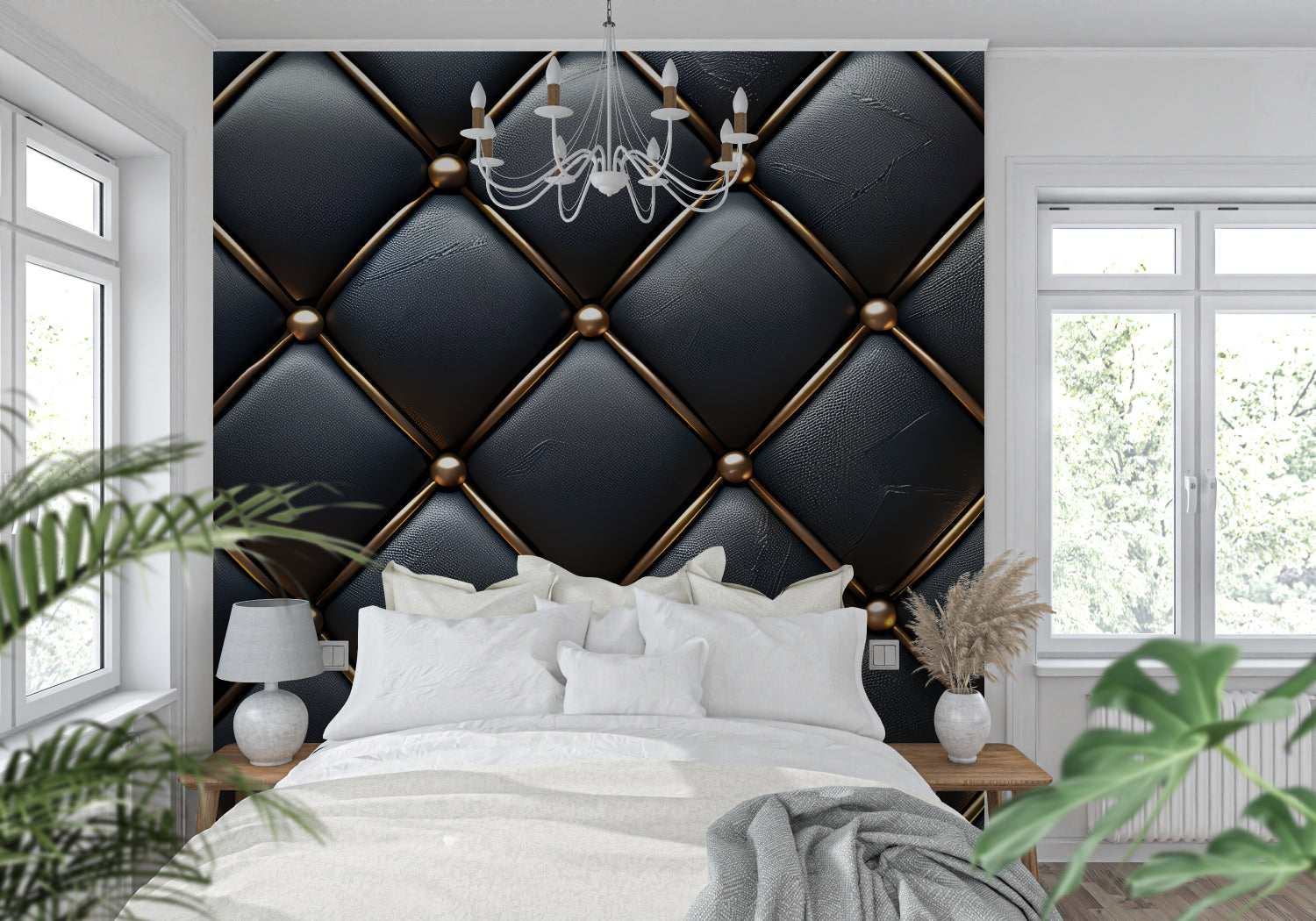 Diese schwarze Leder-Tapete bringt mit ihrem gesteppte Muster Tiefe.