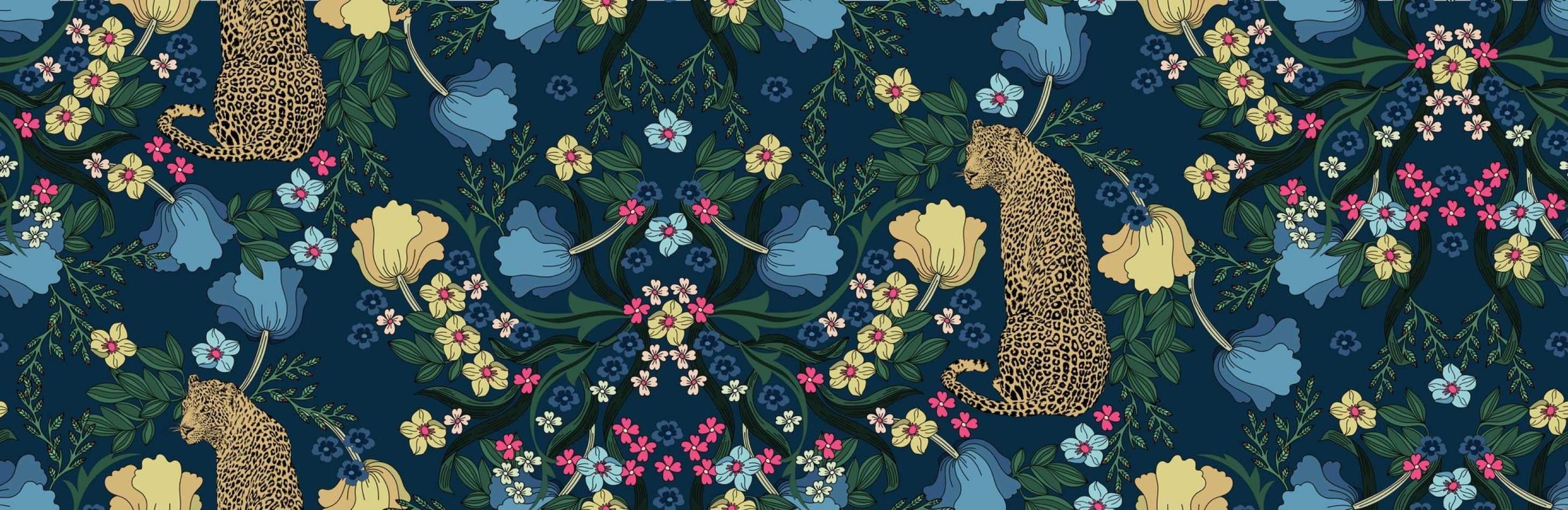 Der satte marineblaue Hintergrund lässt Ihr blumiges Leoparden-Design lebendig erscheinen.