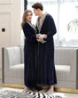 Dieser luxuriöse Plüsch-Bademantel kombiniert hochwertige Materialien und durchdachtes Design für außergewöhnlichen Komfort. Das weiche Samt-Außenmaterial in tiefem Marineblau harmoniert wunderschön mit einem plüschigen Sherpa-gefütterten Kragen und Manschetten für die perfekte Balance aus Eleganz und Wärme.