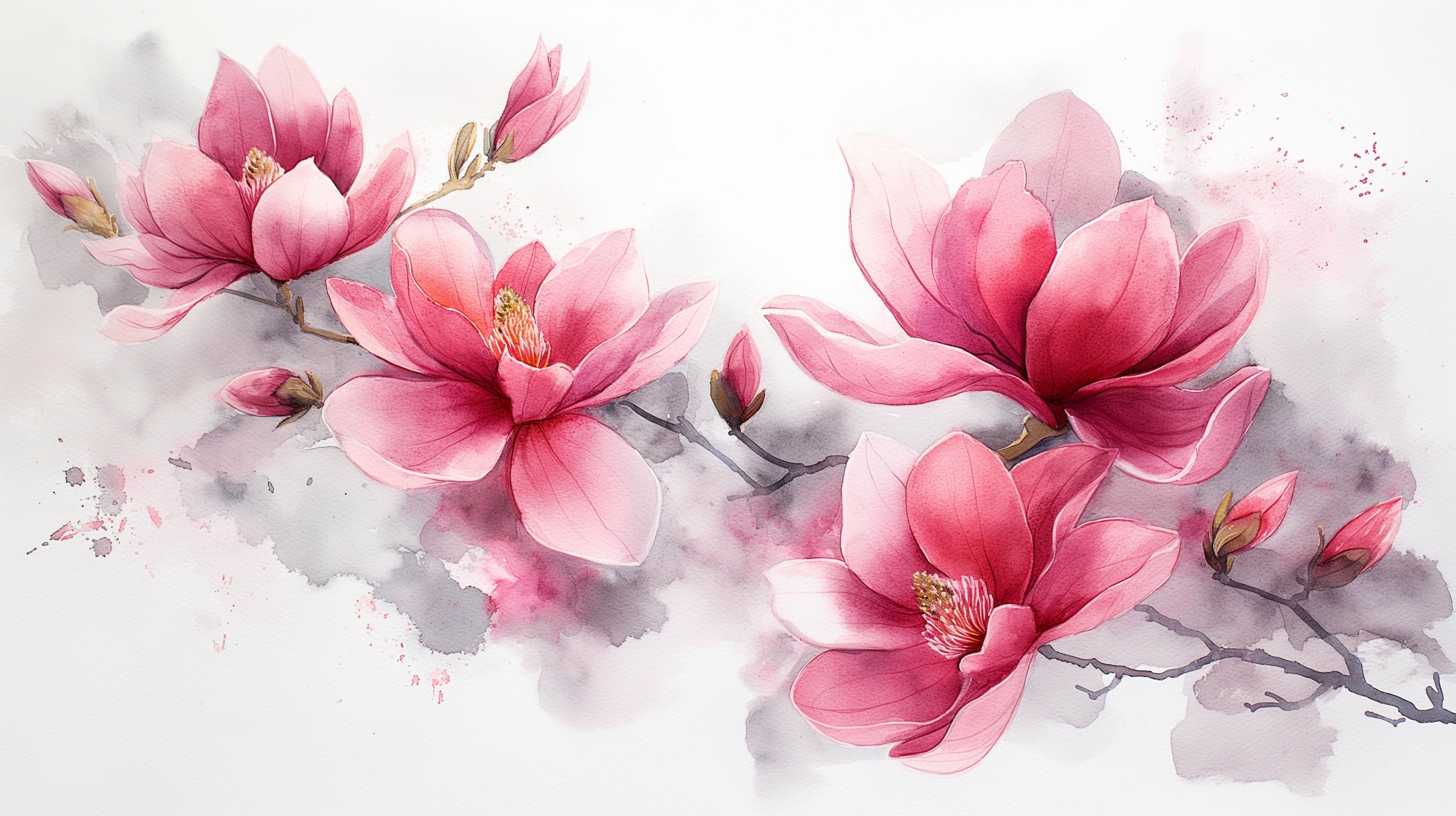 Verwandeln Sie Ihren Raum mit diesem Aquarell-Blumen-Mural, das die sanfte Raffinesse des Frühlings in Ihr Interieur bringt. Die Magnolienblumen-Tapete schafft einen ruhigen Hintergrund, der harmonisch in zeitgenössischen und klassischen Umgebungen wirkt, Tiefe und künstlerischen Flair hinzufügt und dabei eine Atmosphäre der stillen Schönheit bewahrt. Das zarte Gleichgewicht zwischen kräftigen Blüten und subtilen Farbwäschen bietet sowohl dramatische Wirkung als auch beruhigende Präsenz.