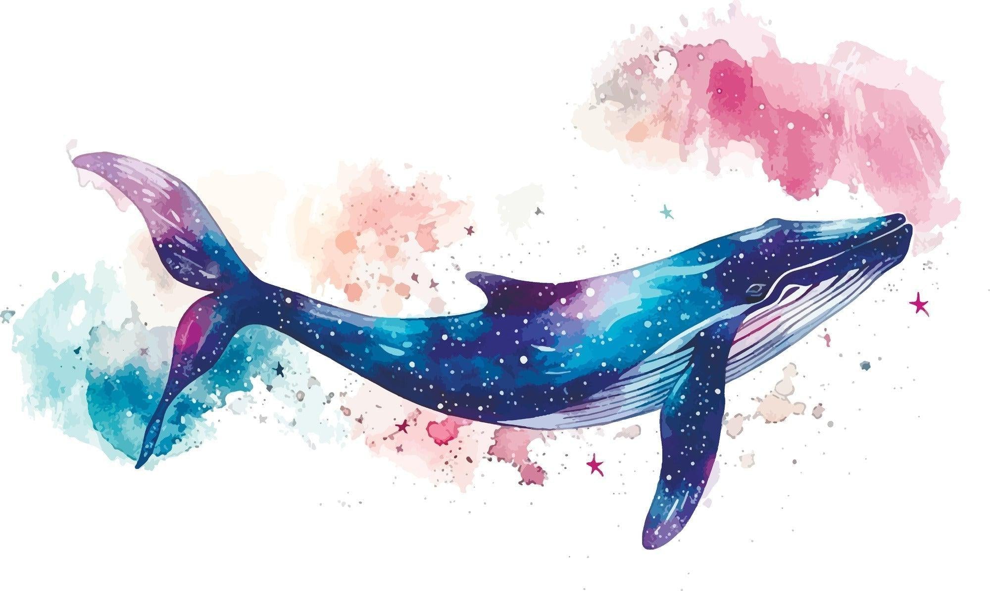 Meeresbewohner Tapete | Kosmischer Wal Aquarelldesign