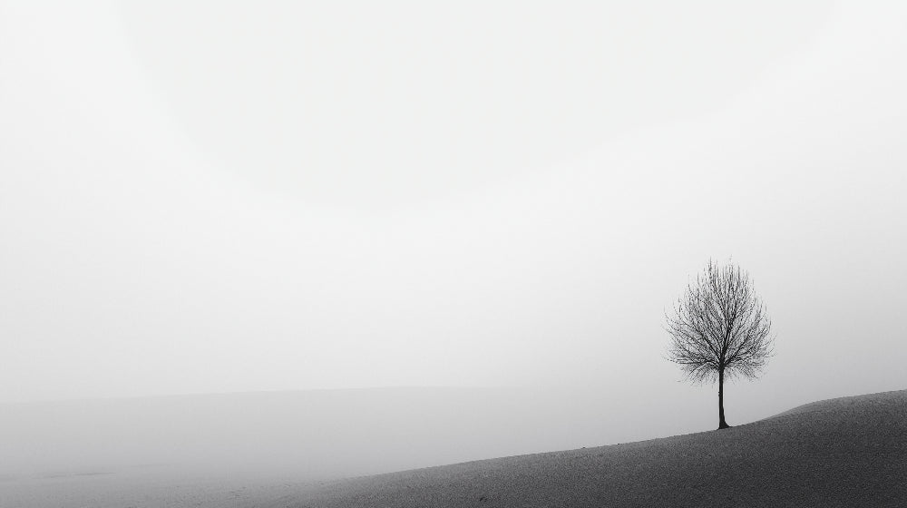 Minimalistische Baum Tapete | Schwarz-Weiß Nebellandschaft