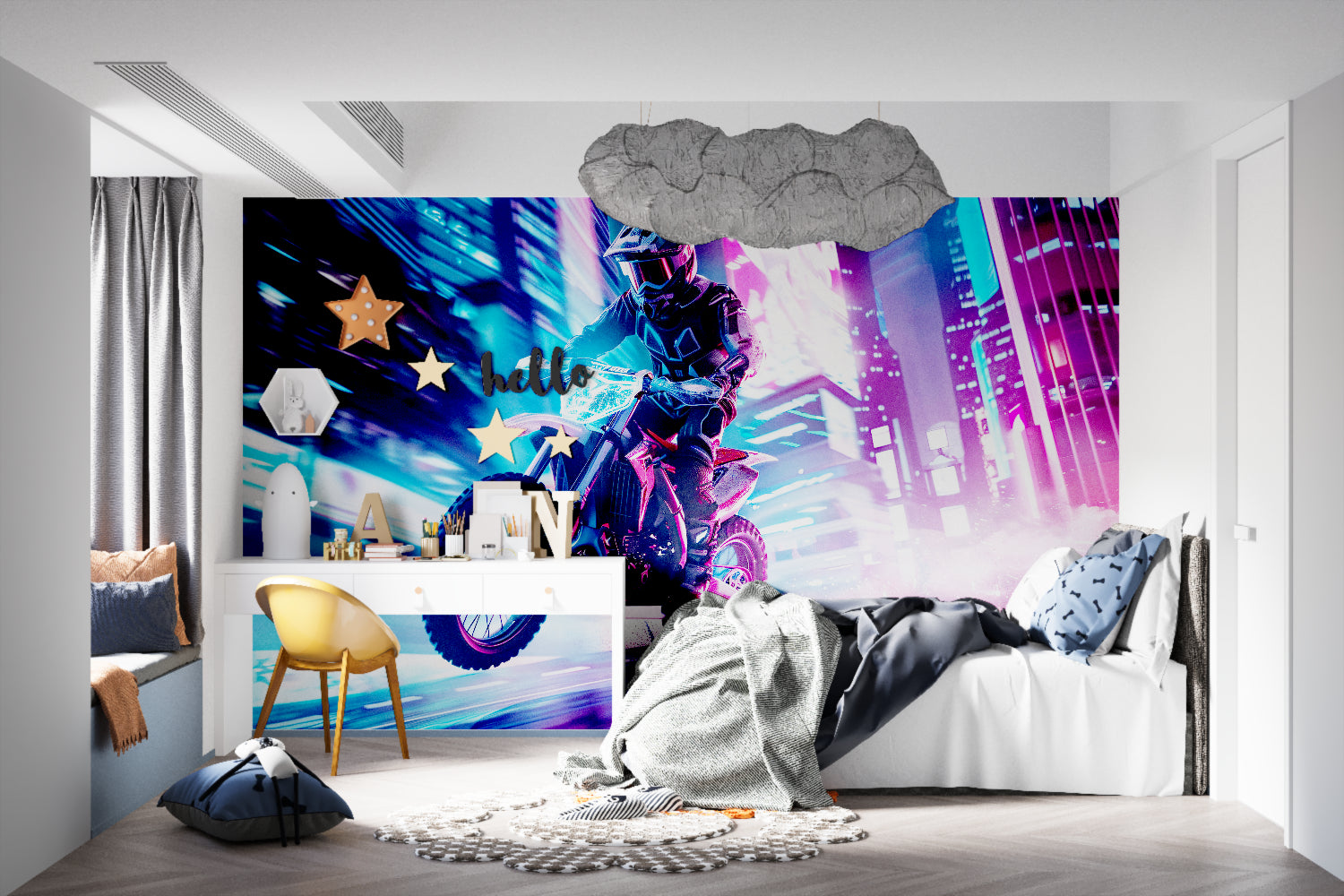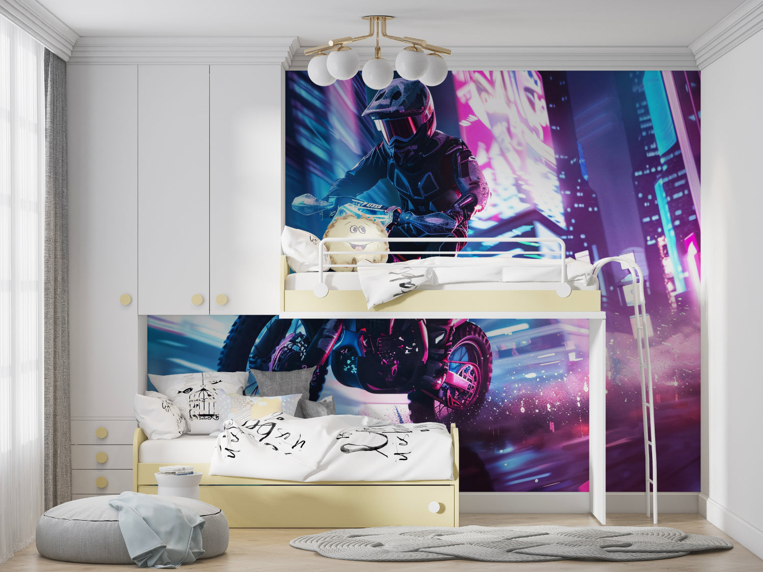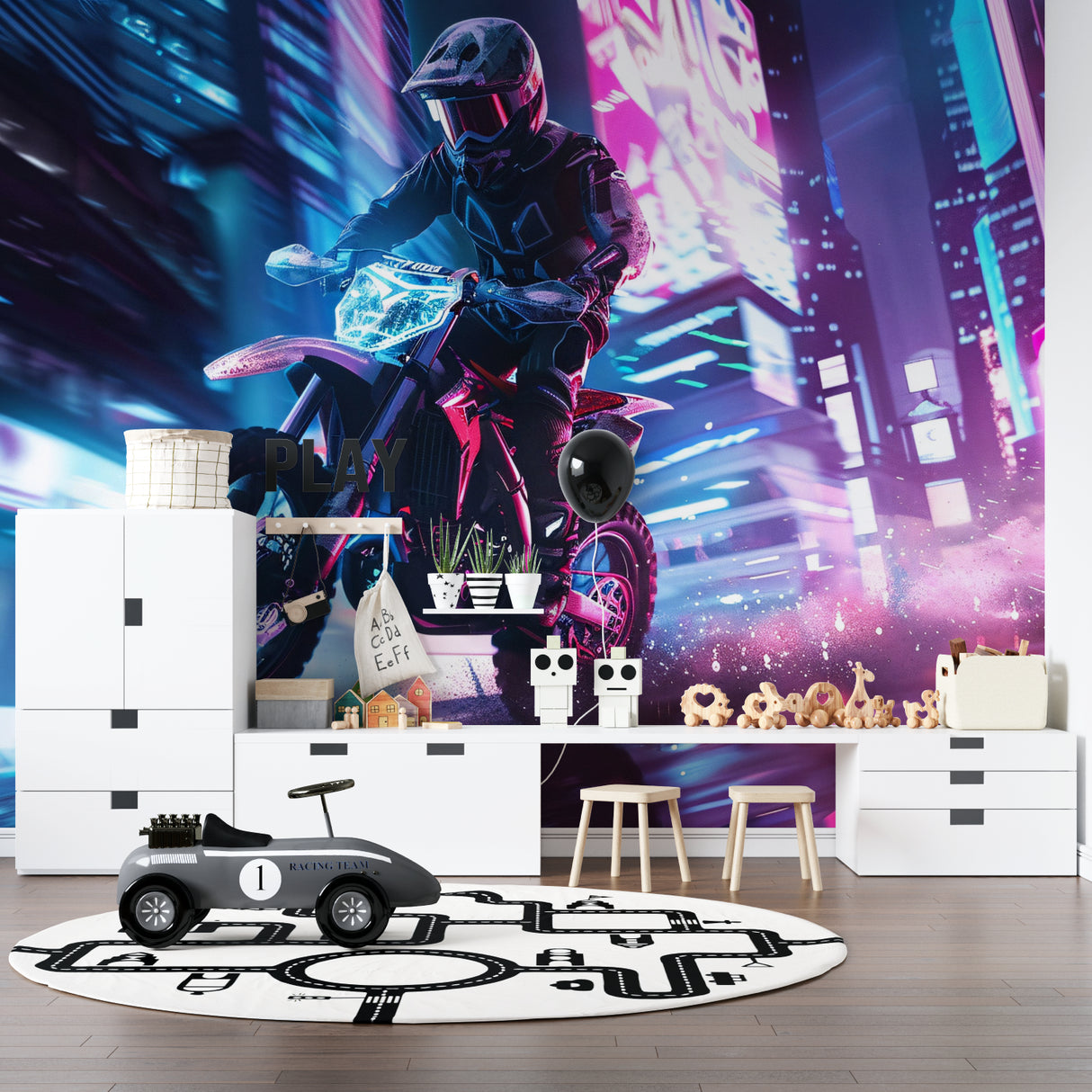 Das Cyberpunk-Motorrad-Design verleiht jedem Raum sofort Coolness.