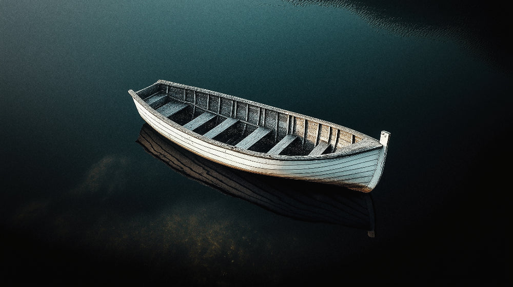 Nautische Tapete | Holzboot auf dunklem Wasser