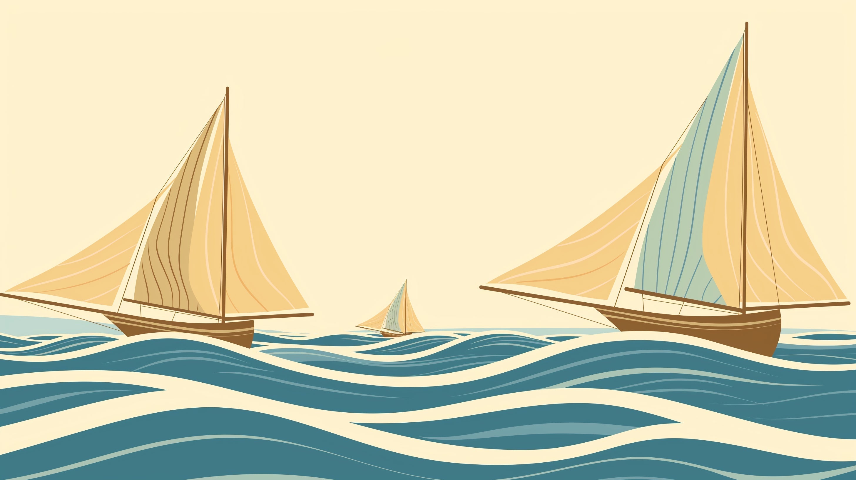 Dieses nautische Tapetenmural fängt die ruhige Schönheit von Segelschiffen ein, die sanft über Wellen gleiten. Vor einem warmen beigen Himmel zeigt das Design elegante Segelboote in sanften goldenen Tönen und dezenten türkisfarbenen Akzenten. Das rhythmische Muster der rollenden Ozeanwellen-Tapete erzeugt ein Gefühl von kontinuierlicher Bewegung, während die klaren Linien und der minimalistische Ansatz dem Design eine anspruchsvolle, moderne Ästhetik verleihen.