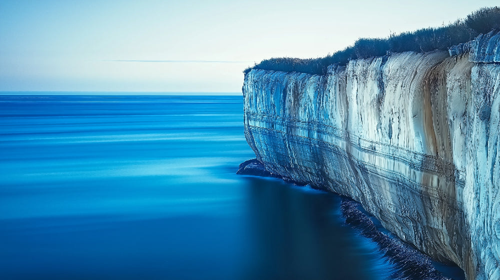 Diese Ozeanklippen-Tapete fängt die rohe Großartigkeit der hoch aufragenden Kalksteinformationen ein, die aus kristallklarem Wasser emporsteigen. Die dramatischen weißen Klippen kontrastieren prächtig mit dem tiefblauen Meer und schaffen ein faszinierendes Zusammenspiel von Texturen und Tönen. Die ruhige Küstenlandschafts-Tapete zeigt die architektonische Meisterschaft der Natur, wo geschichtete Felswände in perfekter Harmonie auf den unendlichen blauen Horizont treffen.