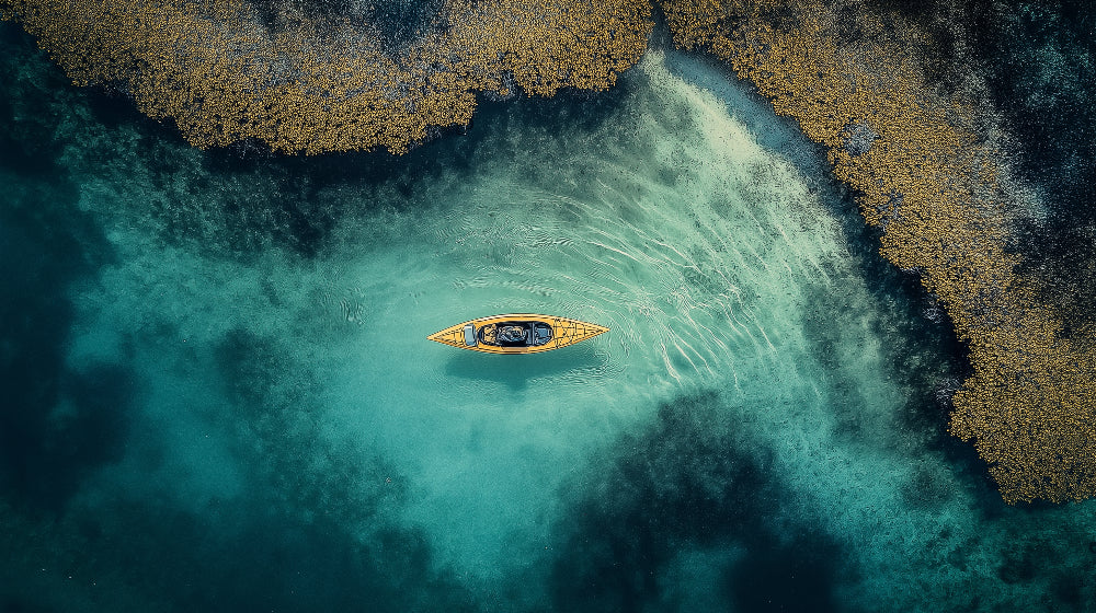 Ozean Tapete | Luftaufnahme Kajak in türkisfarbenem Wasser