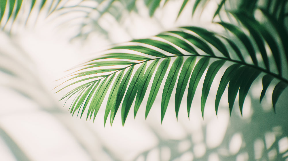 Diese tropische Palmenblätter-Tapete bringt die Natur stilvoll ins Innere.