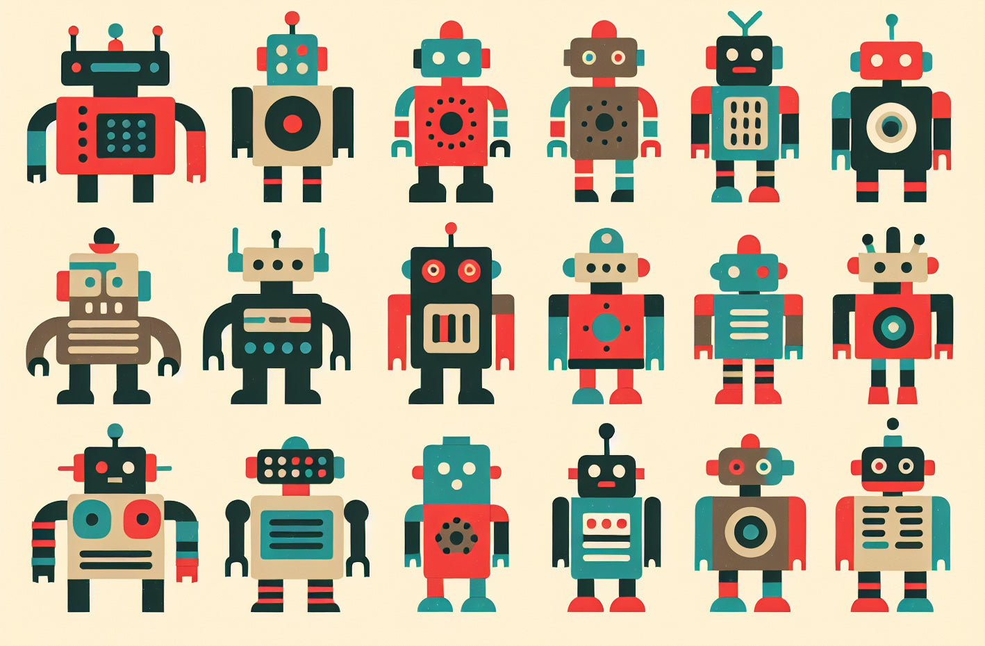 Diese Retro-Roboter-Tapete bringt pure Freude in jeden Raum.