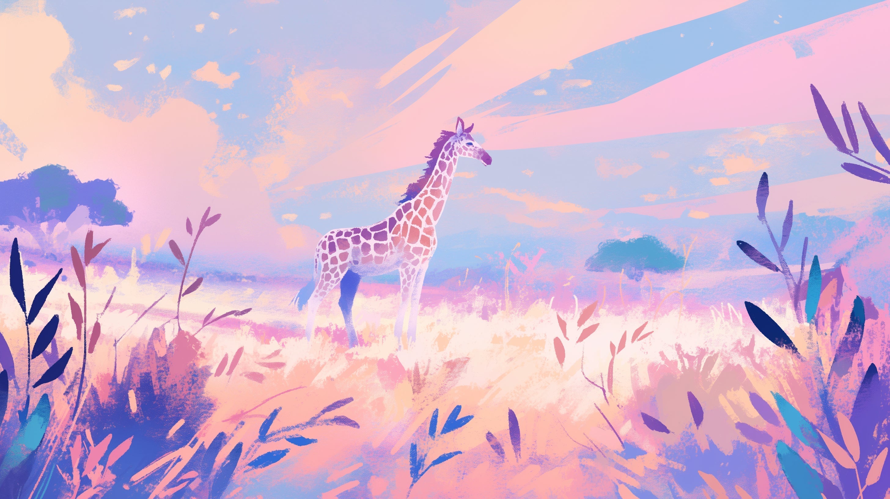 Safari Tapete | Traumhafte Giraffe im pastellfarbenen Sonnenuntergang