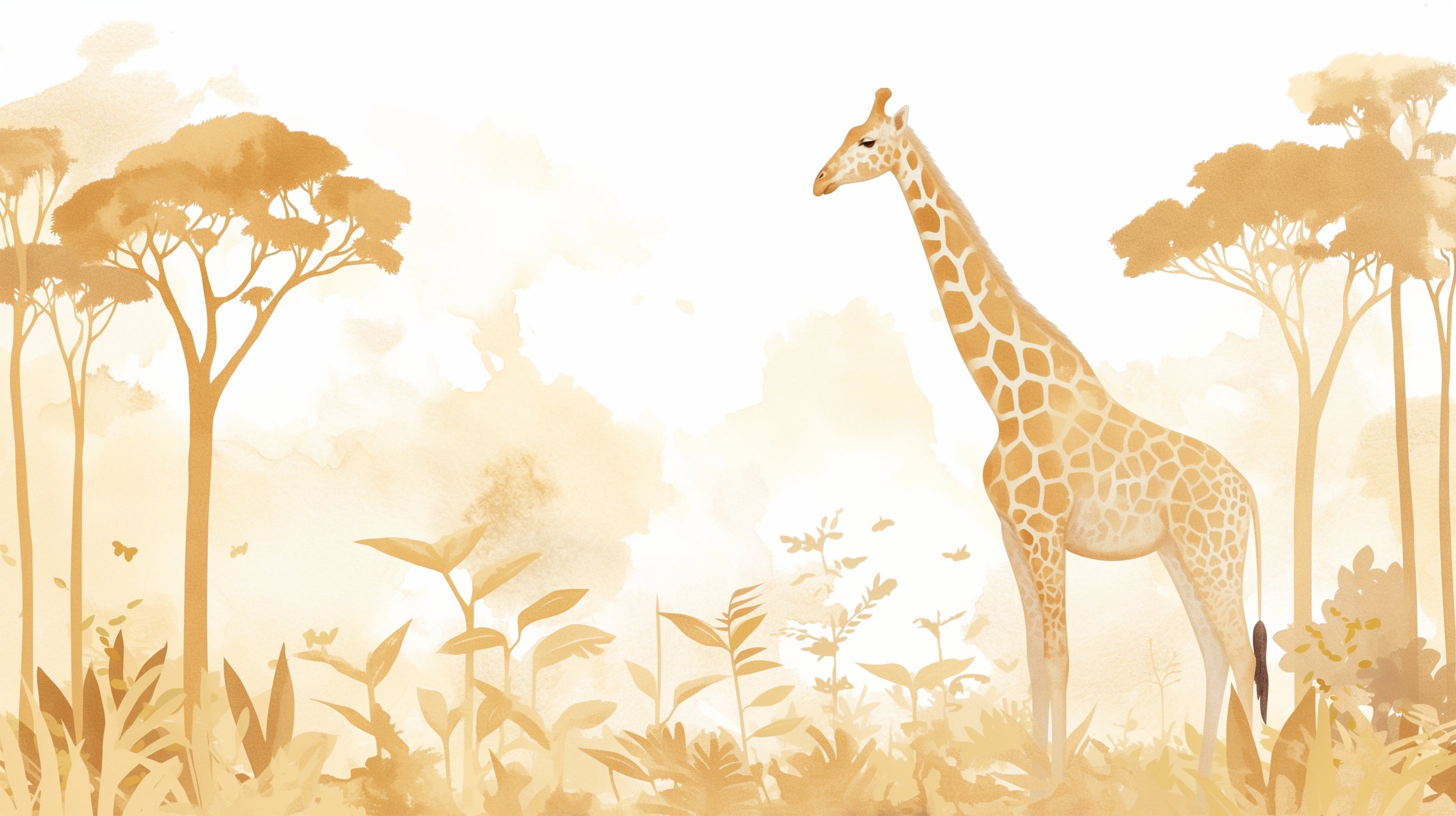 Safari Tapete | Goldene Giraffe in Aquarell-Savanne