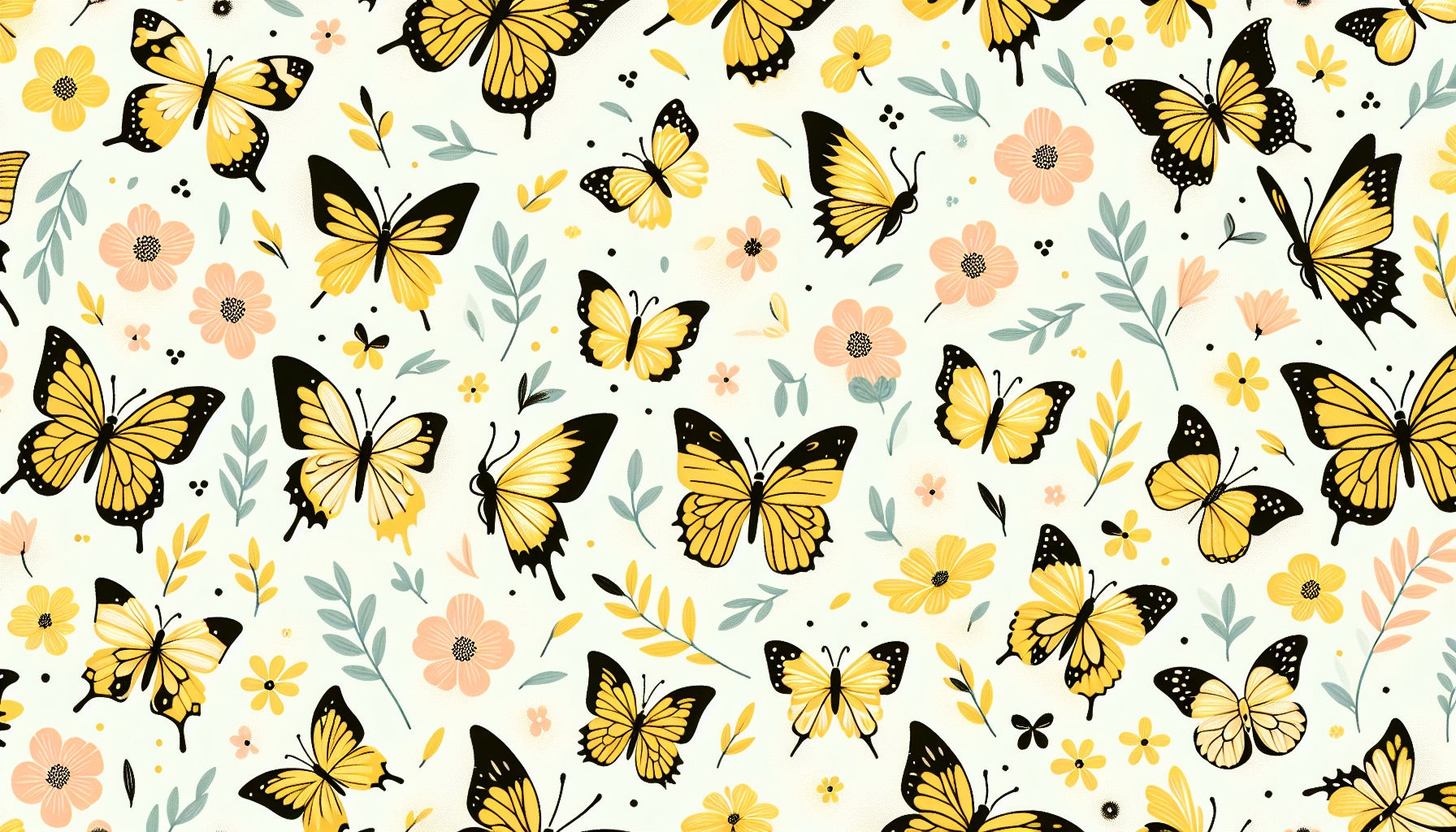 Schmetterling Tapete | Gelbes Monarch Design mit Blumenmuster