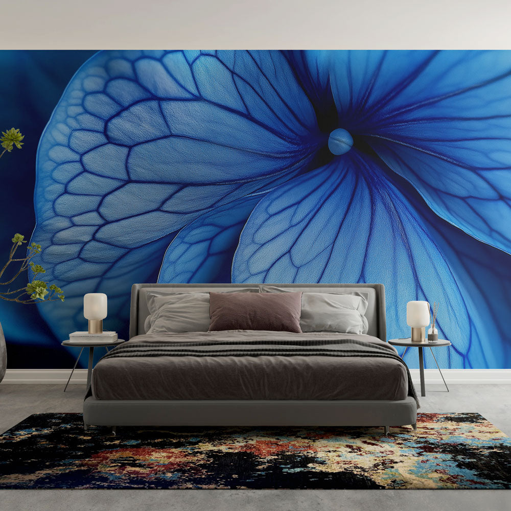 Verwandeln Sie Ihren Raum mit diesem Makro-Schmetterlingswandbild, das sowohl Dramatik als auch Ruhe bringt. Die naturinspirierte Tapete schafft eine immersive Atmosphäre, die in zeitgenössischen Innenräumen wunderbar wirkt und jedem Raum Tiefe und eine anspruchsvolle Wirkung verleiht. Das großformatige Design dient als auffälliger Blickfang und bewahrt gleichzeitig durch seine harmonische blaue Farbpalette und organische Muster ein Gefühl der Ruhe.