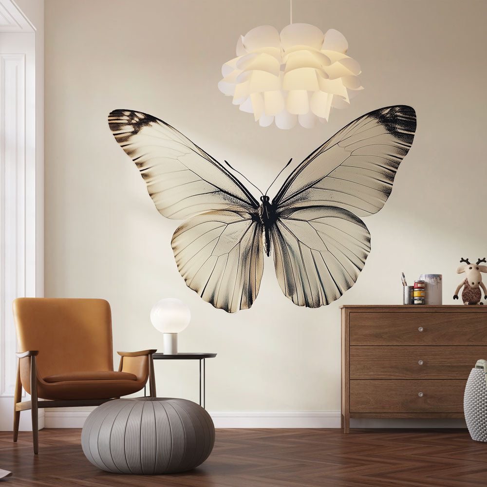 Verwandeln Sie Ihren Raum mit dieser eleganten Schmetterlingstapete, die jedem Zimmer eine Atmosphäre der Ruhe und natürlichen Eleganz verleiht. Das monochrome Insekten-Wandbild harmoniert mit modernen, skandinavischen oder zeitgenössischen Einrichtungsstilen und schafft eine anspruchsvolle Atmosphäre, die künstlerischen Ausdruck mit natürlicher Schönheit verbindet. Das großformatige Design verleiht Tiefe und visuelles Interesse, während es eine ruhige und ausgewogene Stimmung bewahrt.