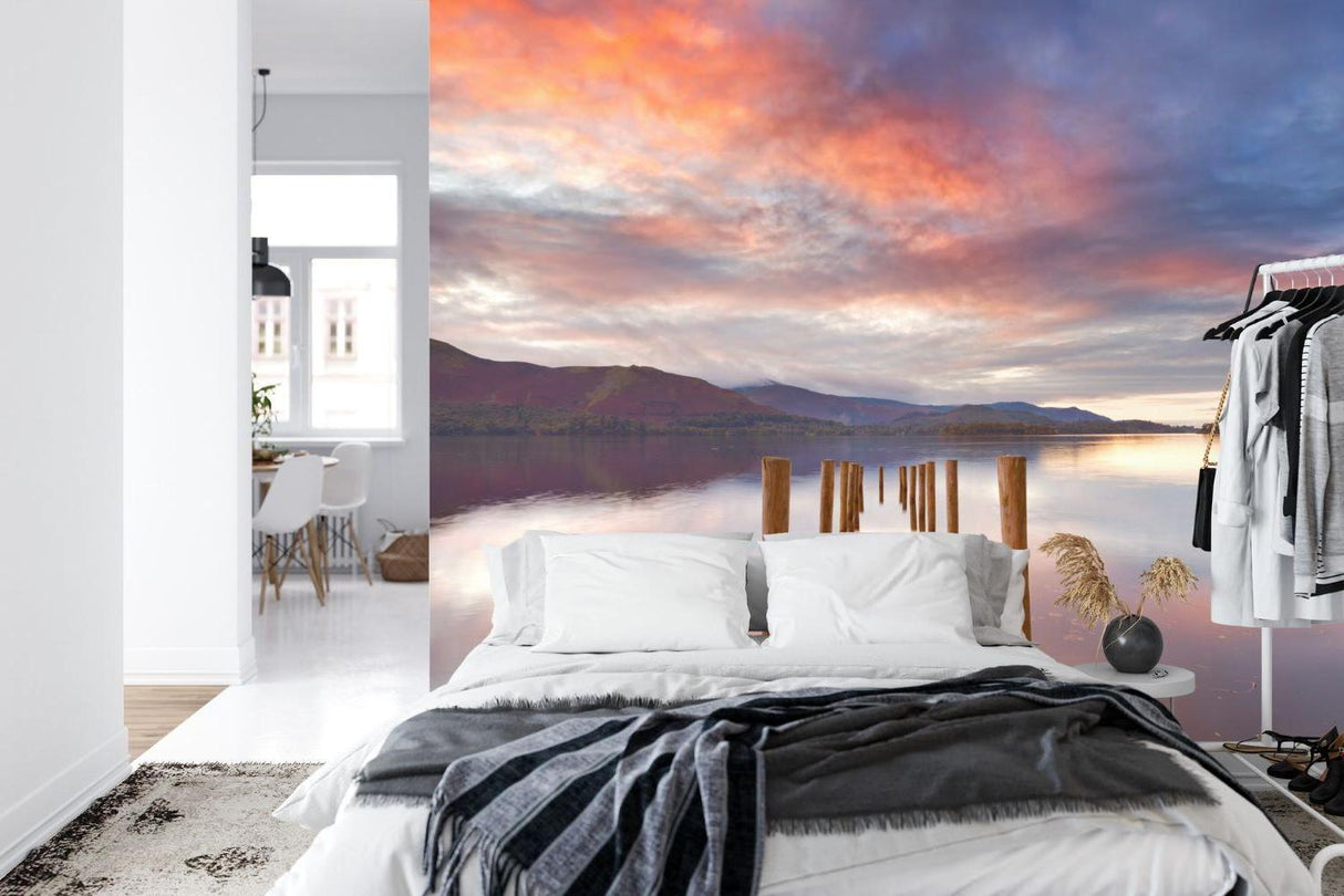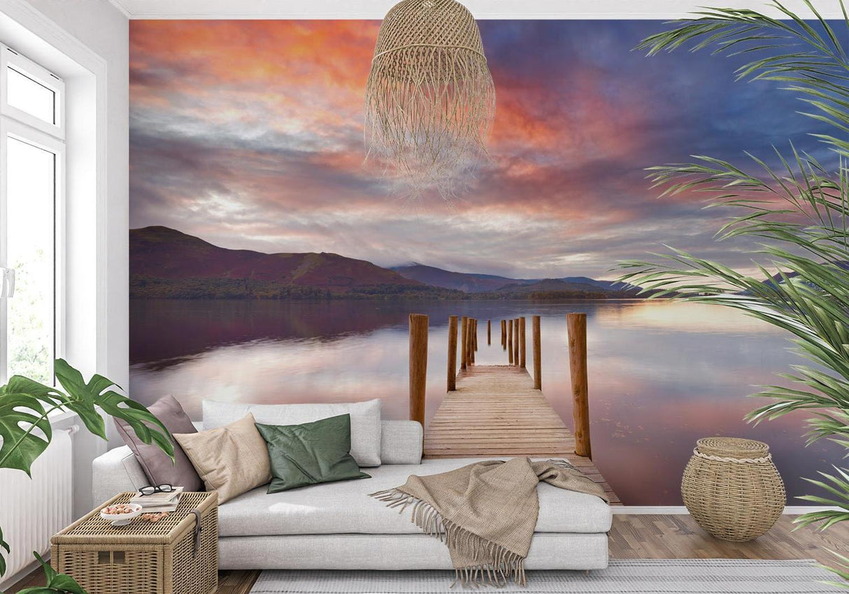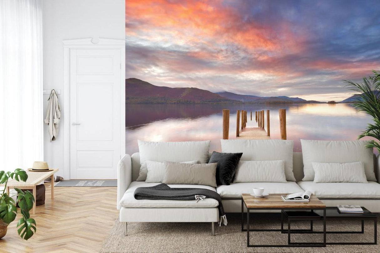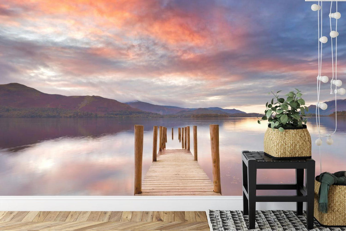 Diese Sonnenuntergang-See-Tapete lässt jeden Raum offener und heller wirken.