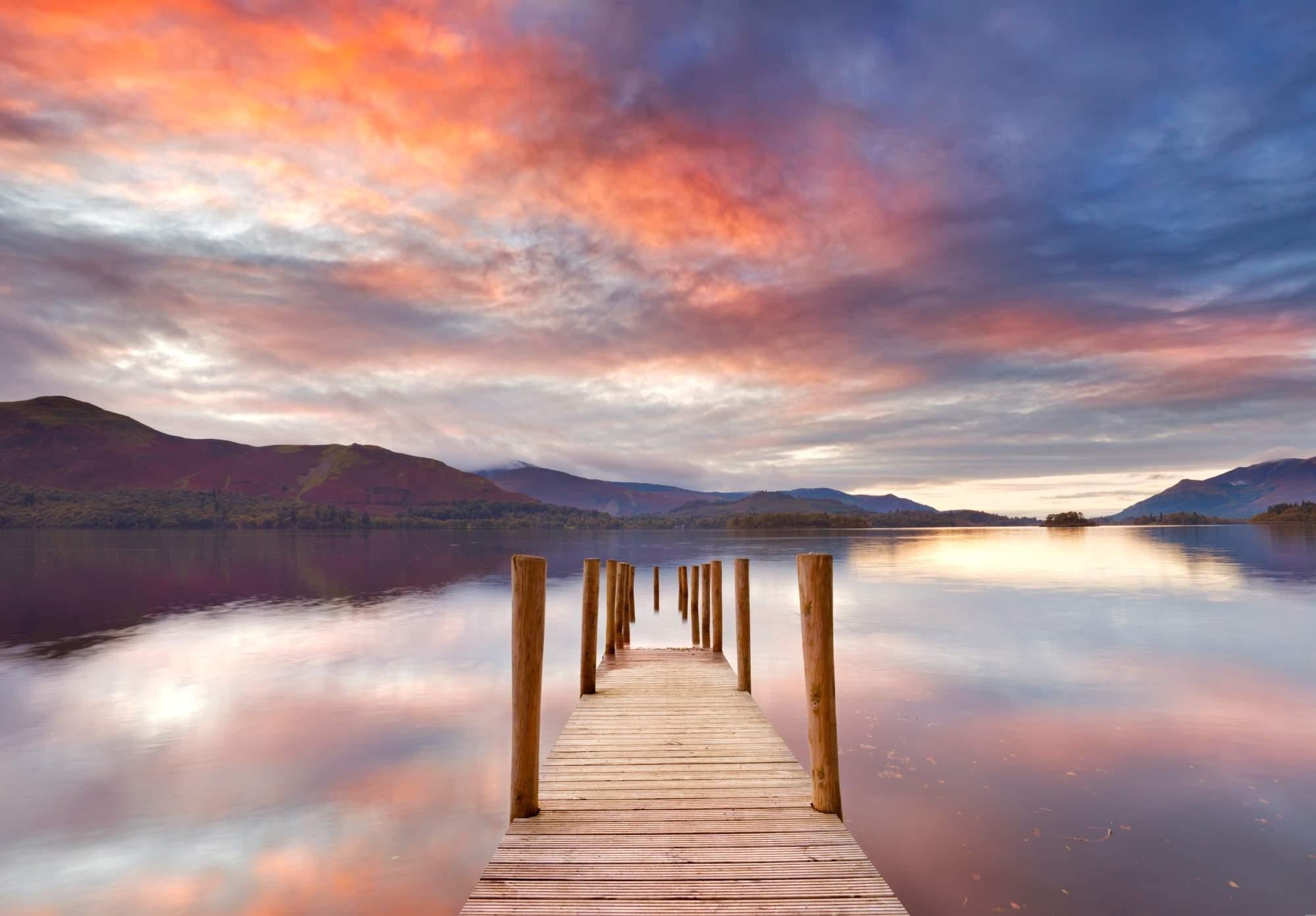 See Tapete | Sonnenuntergang Berg Pier Spiegelung