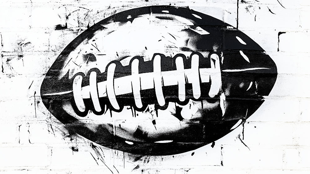Dieses Fußball-Wandbild zeigt eine auffällige monochrome Komposition, die den Geist des Sports durch zeitgenössischen Street-Art-Stil einfängt. Das kühne Schwarz-Weiß-Design präsentiert ein Sport-Wandbild-Design mit dynamischen Pinselstrichen und künstlerischen Spritzern, die die klassische Fußball-Silhouette mit einem modernen, urbanen Touch versehen. Die grafische Interpretation verbindet rohe künstlerische Ausdruckskraft mit sportlicher Ikonografie und schafft eine kraftvolle visuelle Aussage vor dem klaren weißen Hintergrund.