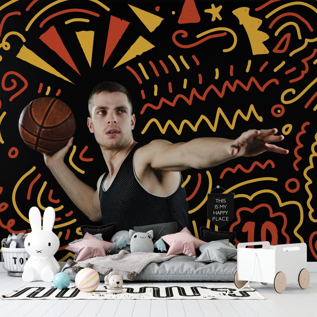 Dieses basketballbezogene Design passt perfekt zu den aktuellen Raumtrends.