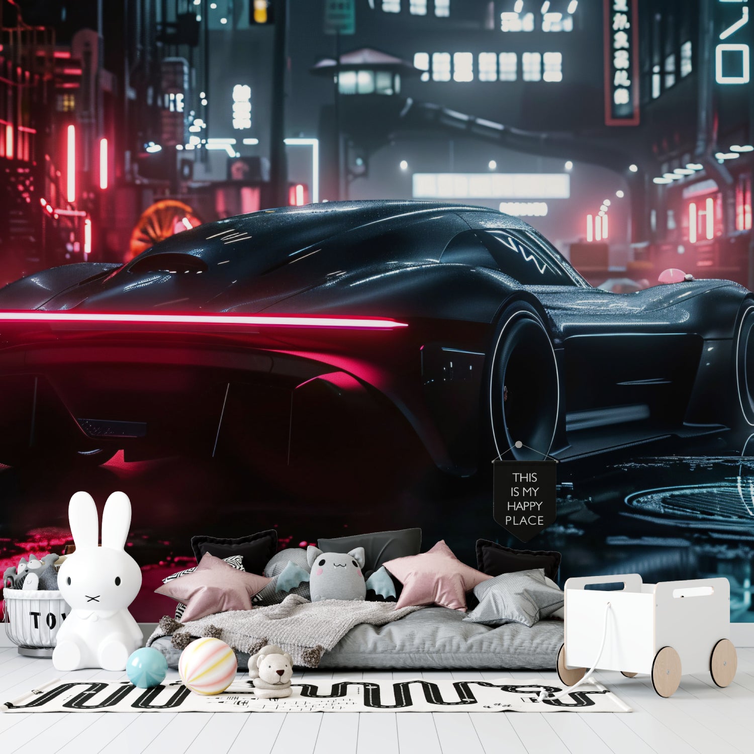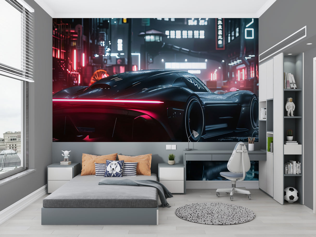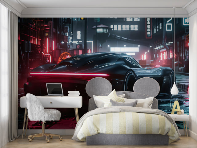 Dieses Sportwagen-Wandmural erweckt die Lichter der Stadt in Ihrem Raum zum Leben.